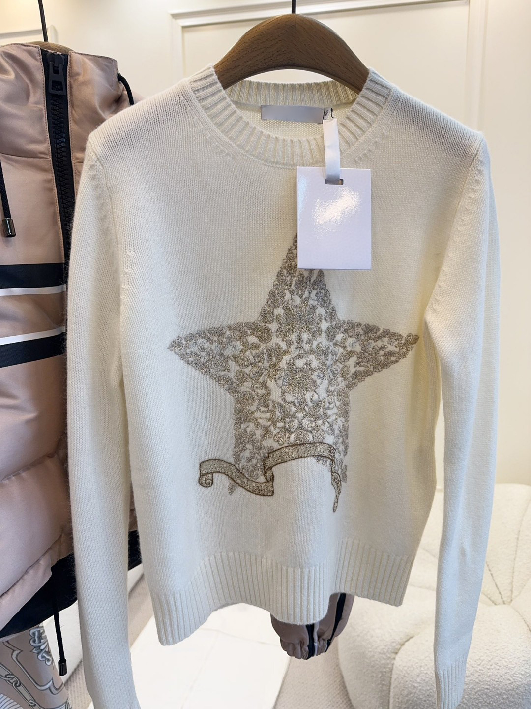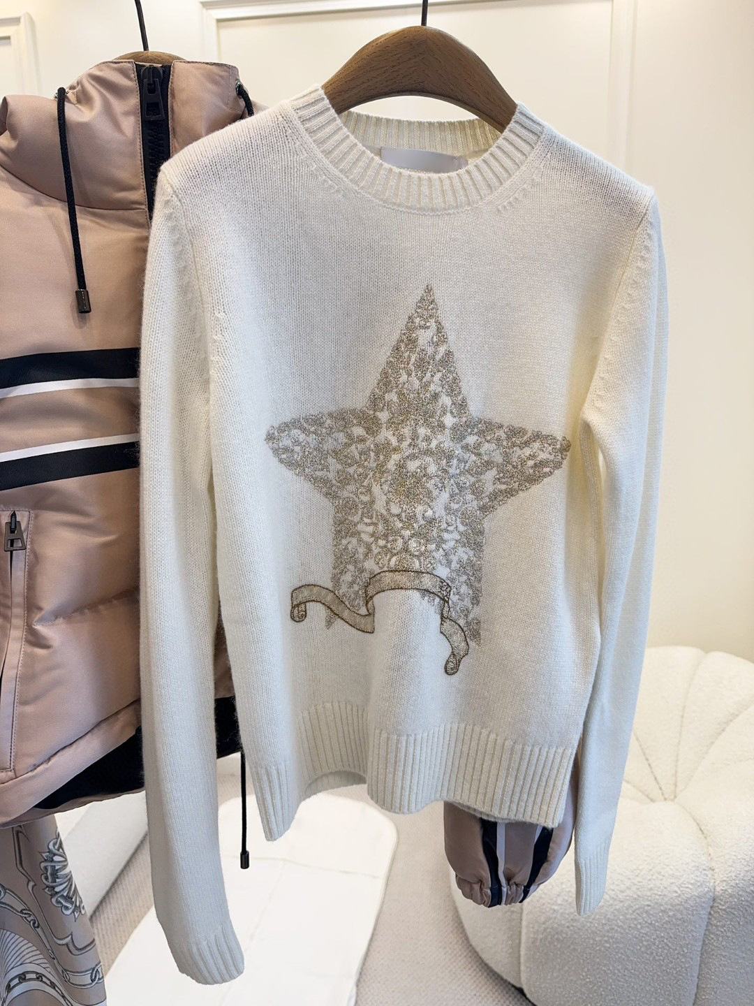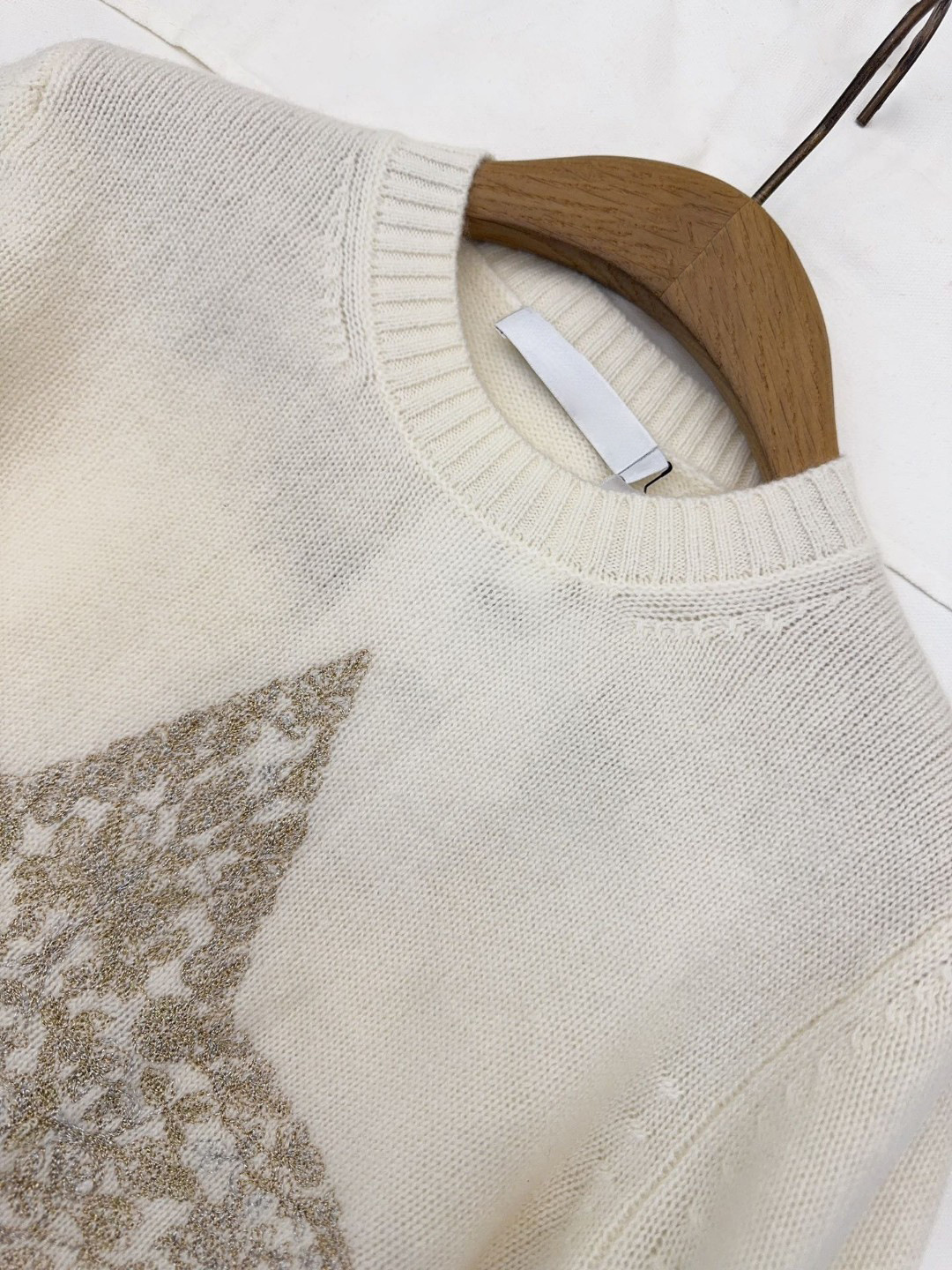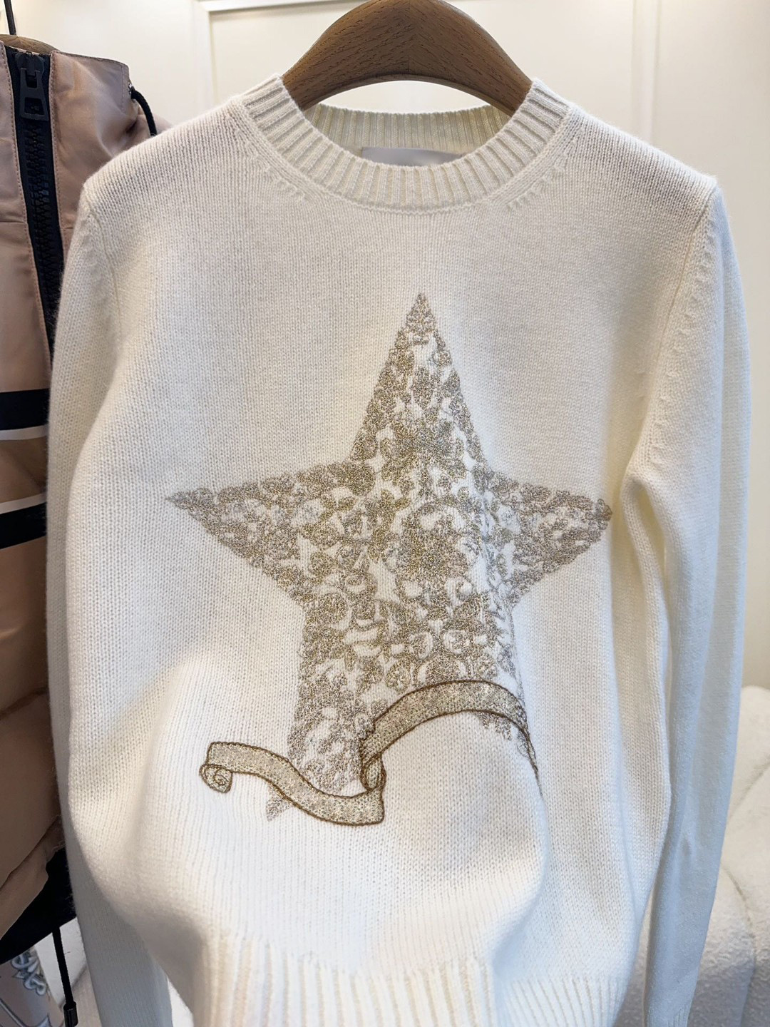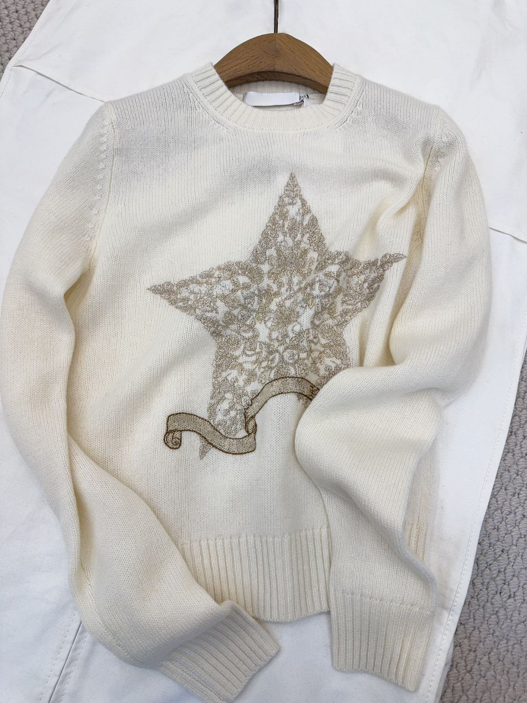 現物D家の新型重工金線五角星刺繍減齢金キラキラカシミヤの長袖セーター女性