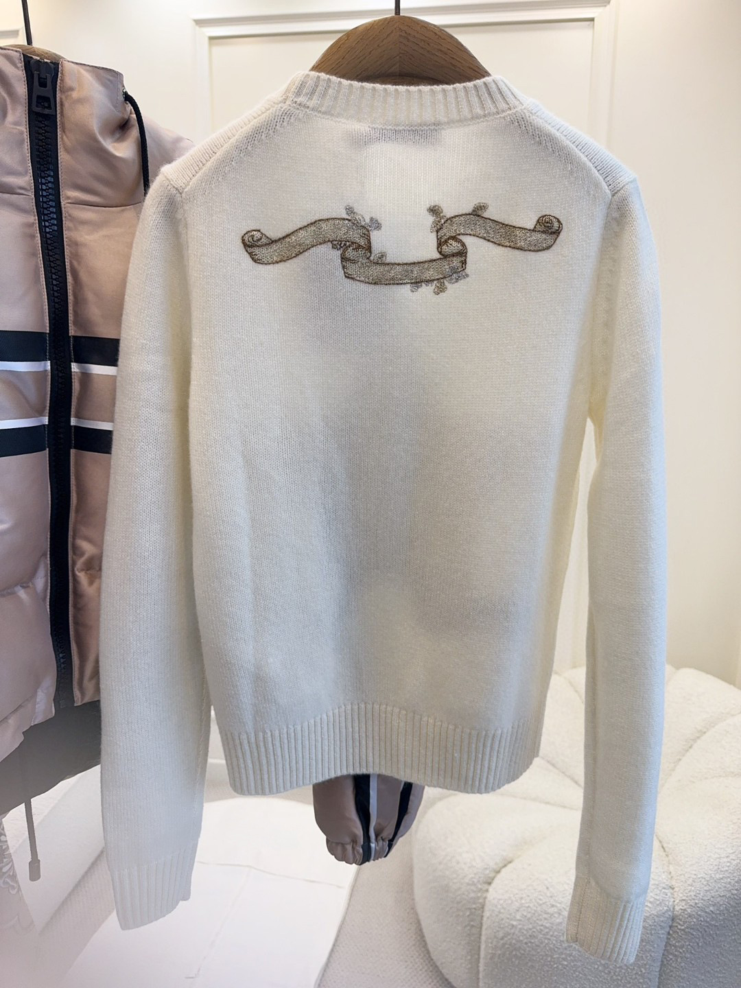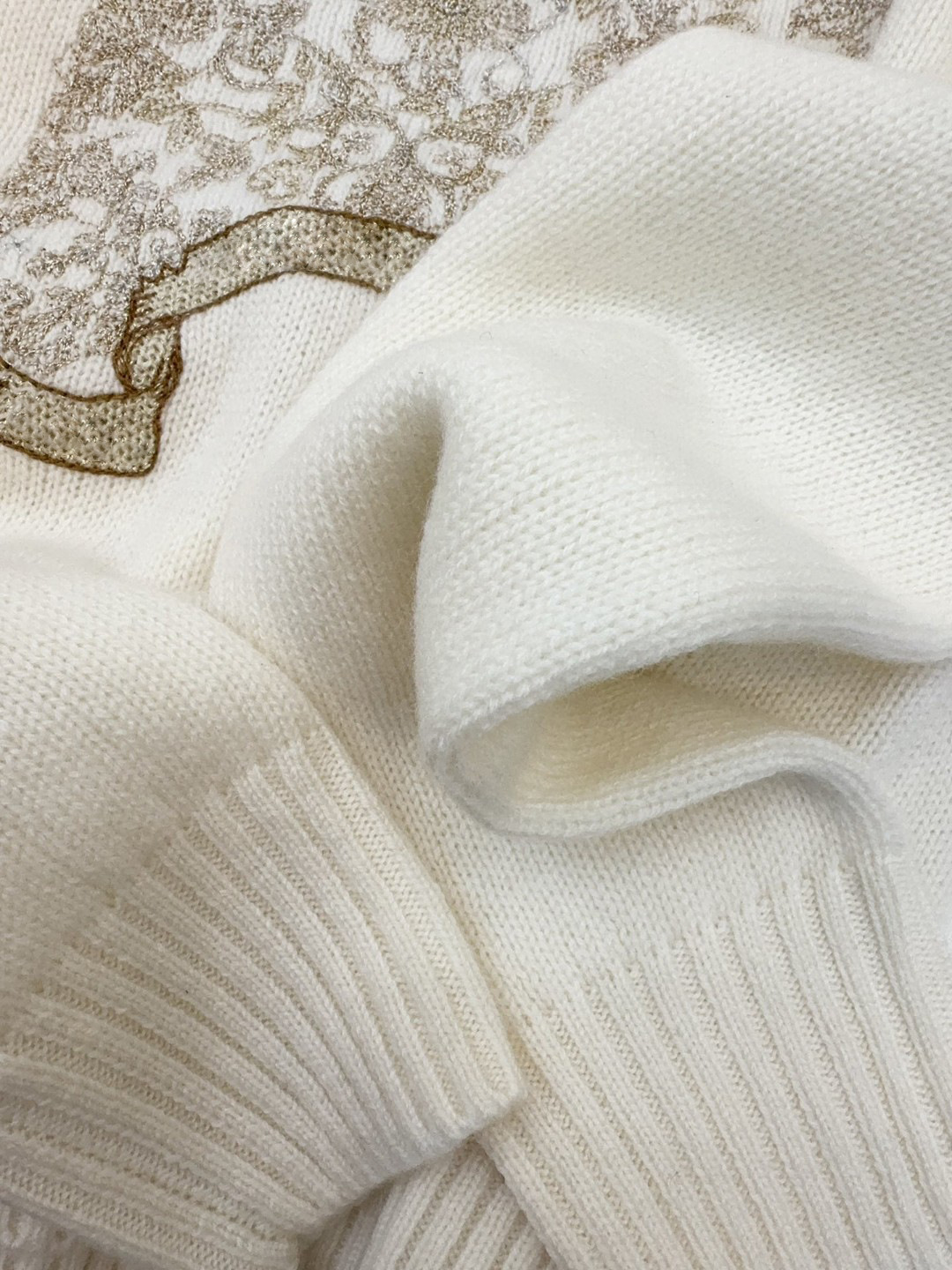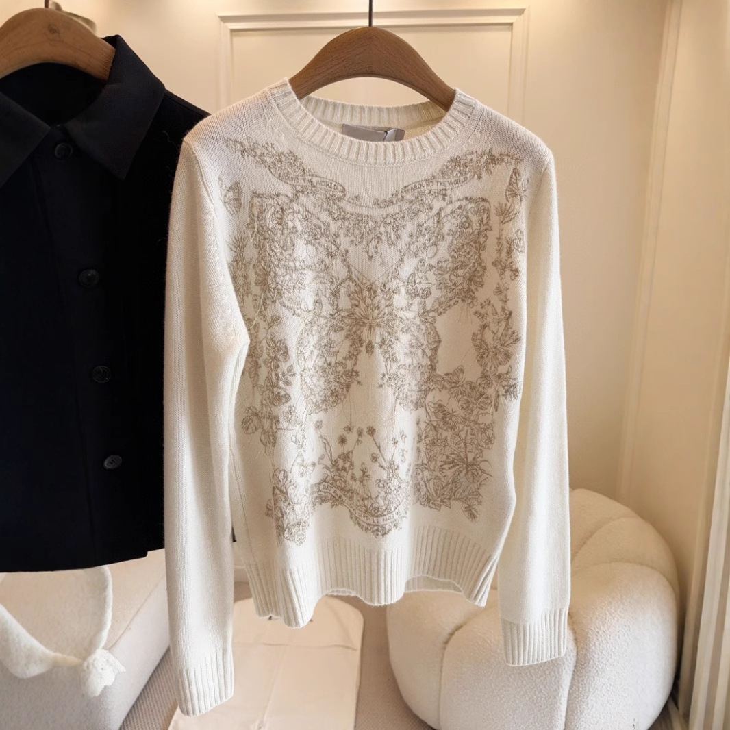 在庫ありDブランド2025年初春新作 シャネル風エレガントな蝶と文字の刺繍入りカシミヤ柔らかセーター レディース