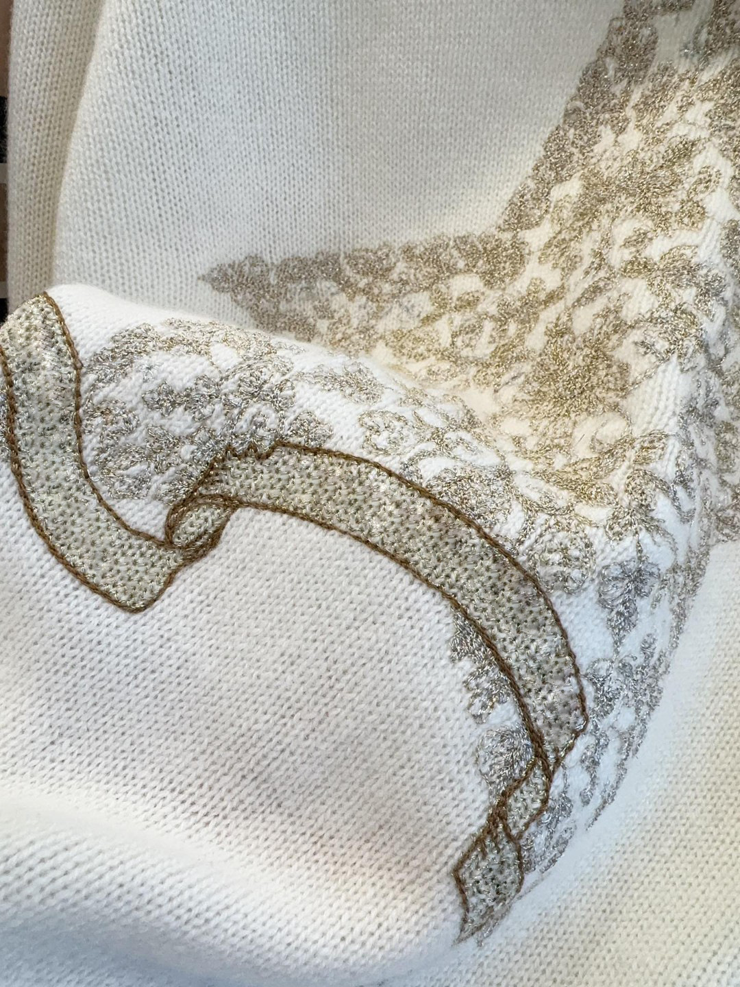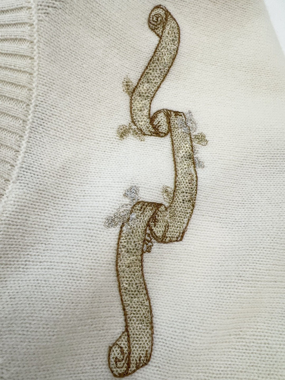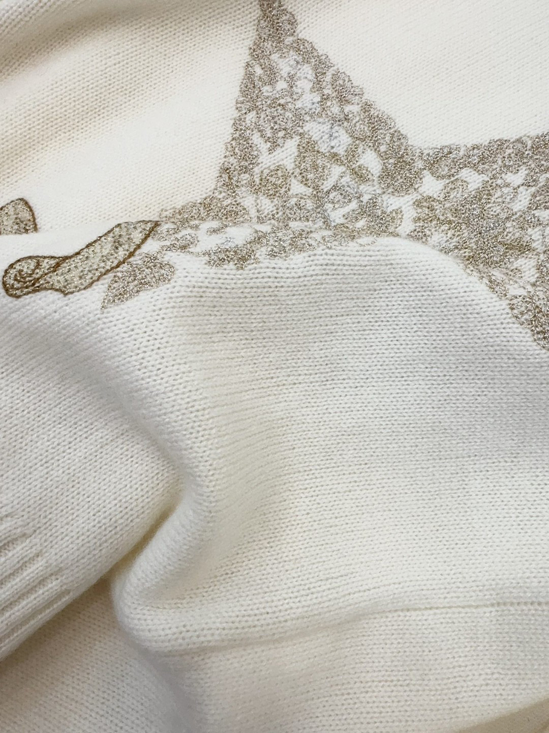 在庫ありDブランド2025年初春新作 シャネル風エレガントな蝶と文字の刺繍入りカシミヤ柔らかセーター レディース