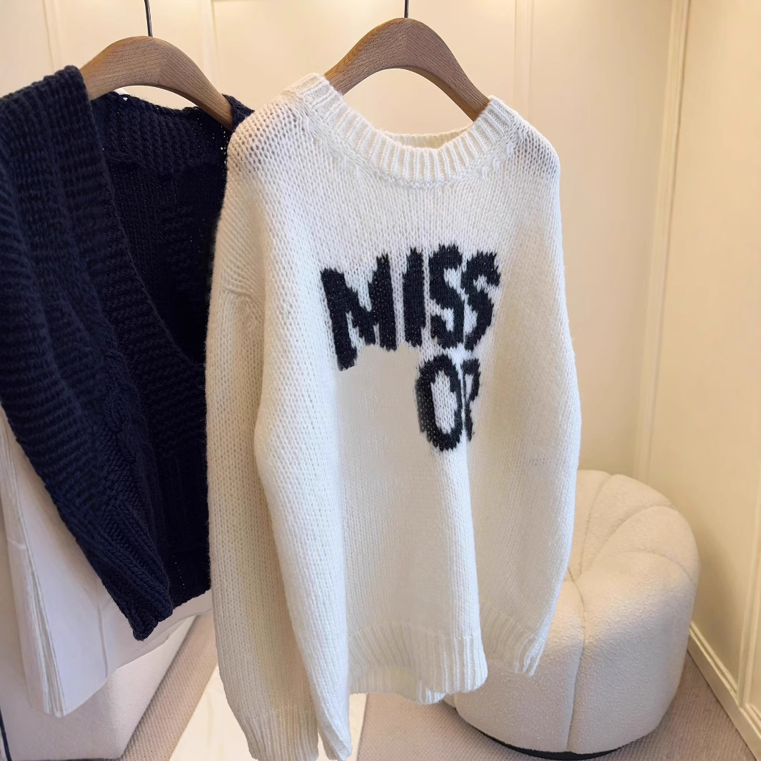 現物D家の新しいアルファベットの落書き刺繍カシミヤのニットの丸首のゆったりしたファッションのプルオーバーのセーターの女性