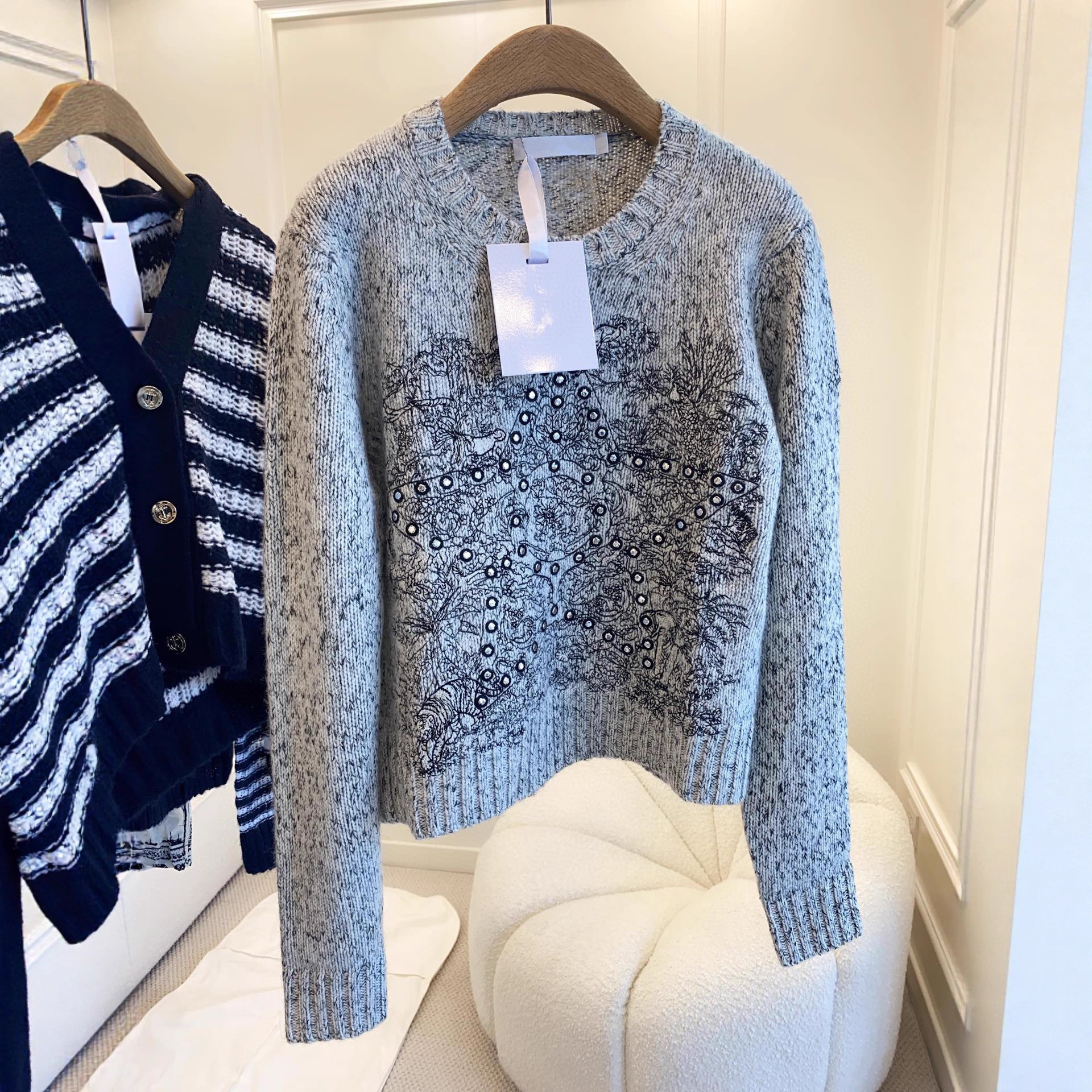 現物D家の新型高定アルファベット落書き刺繍カシミヤニット丸首ファッションプルオーバーセーター女性