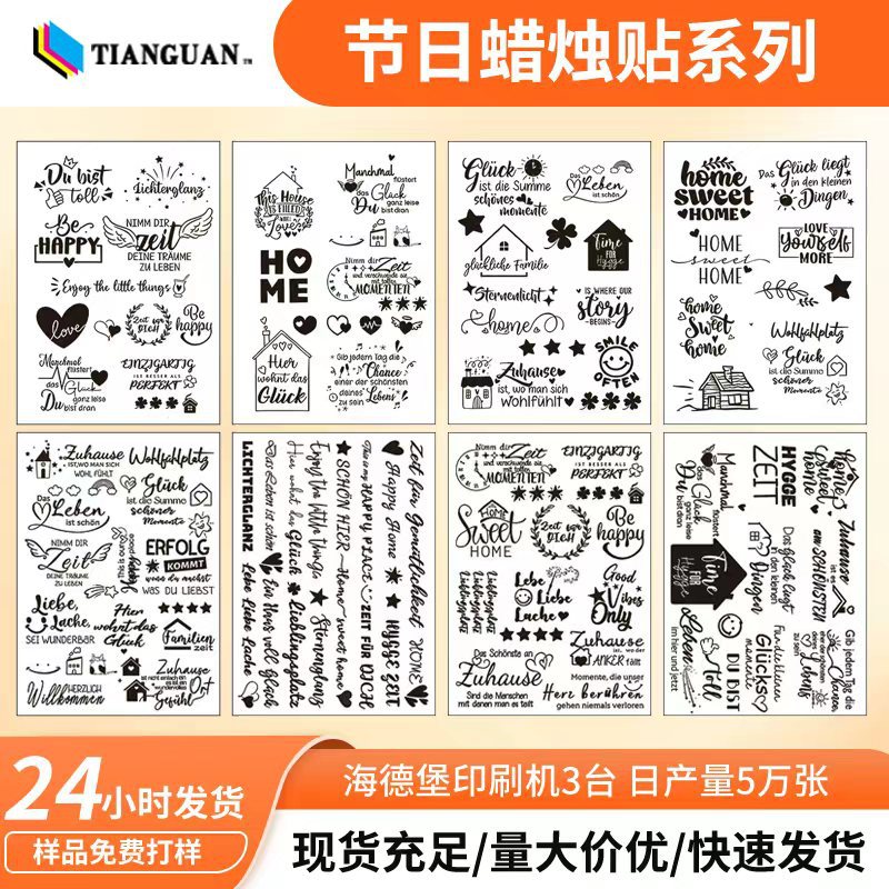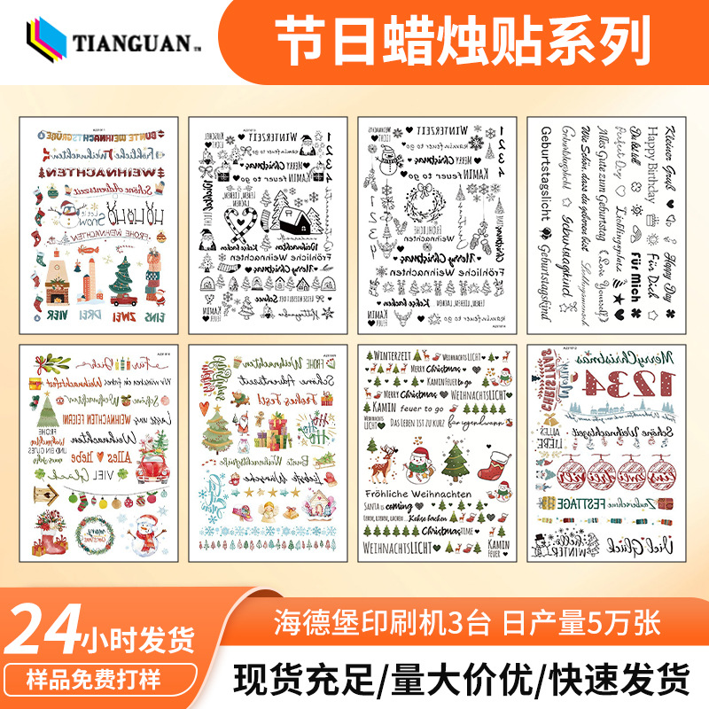 跨境蜡烛水转印贴纸圣诞节装饰DIY新款刮刮贴节日派对装饰蜡烛贴