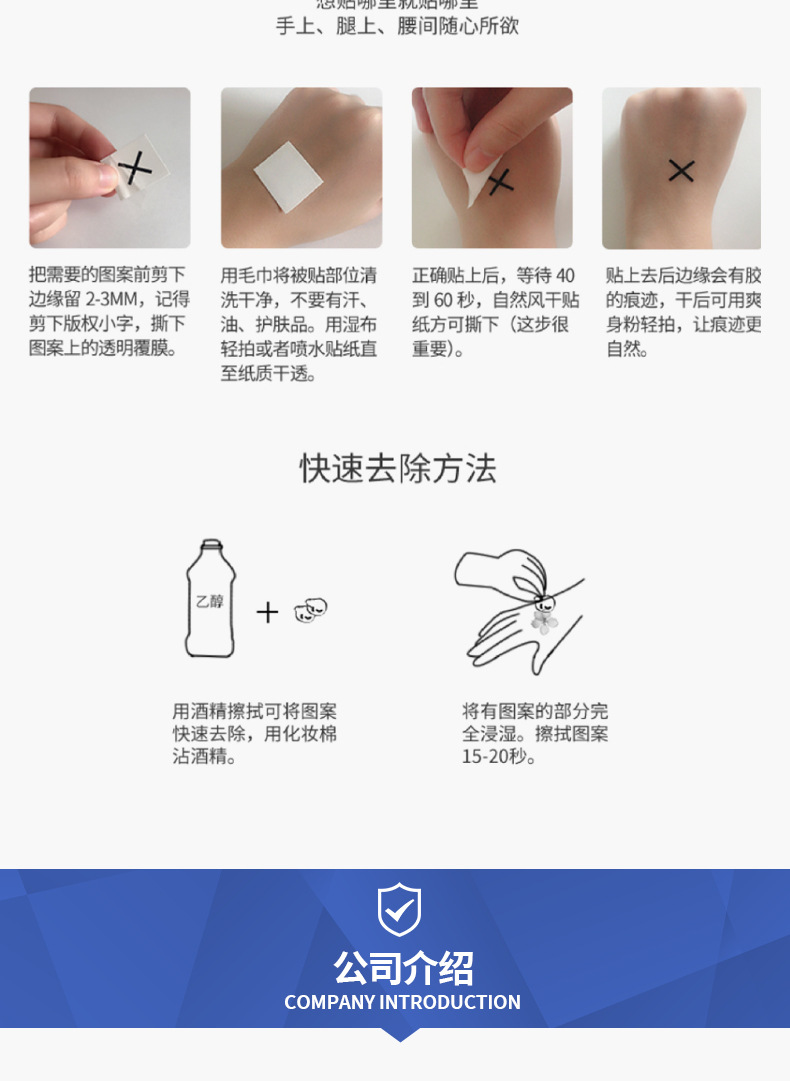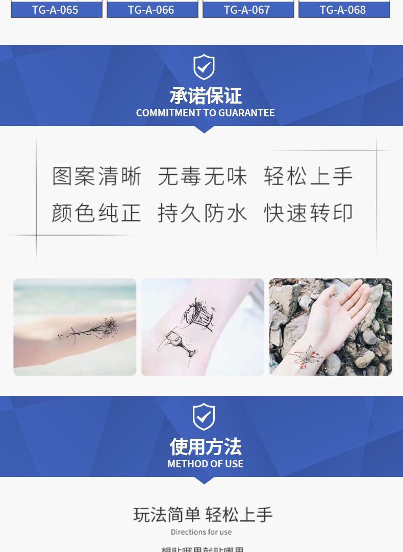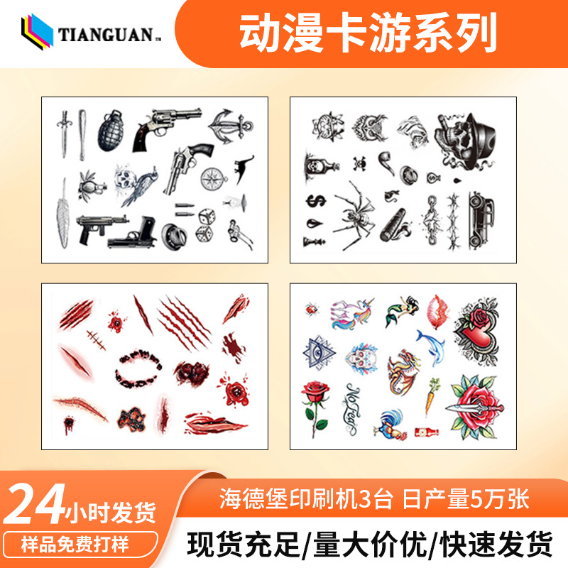一撕一贴不反光高仿真刺青色不印染无水2周纹身贴无水草本纹身贴
