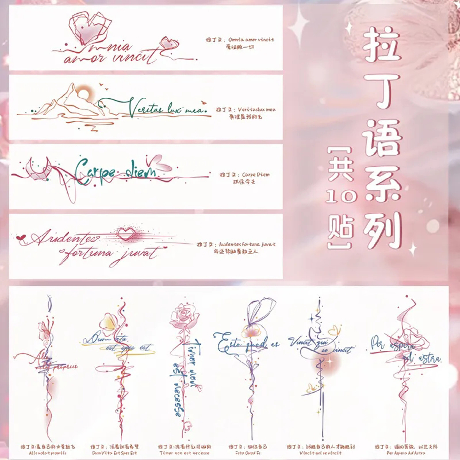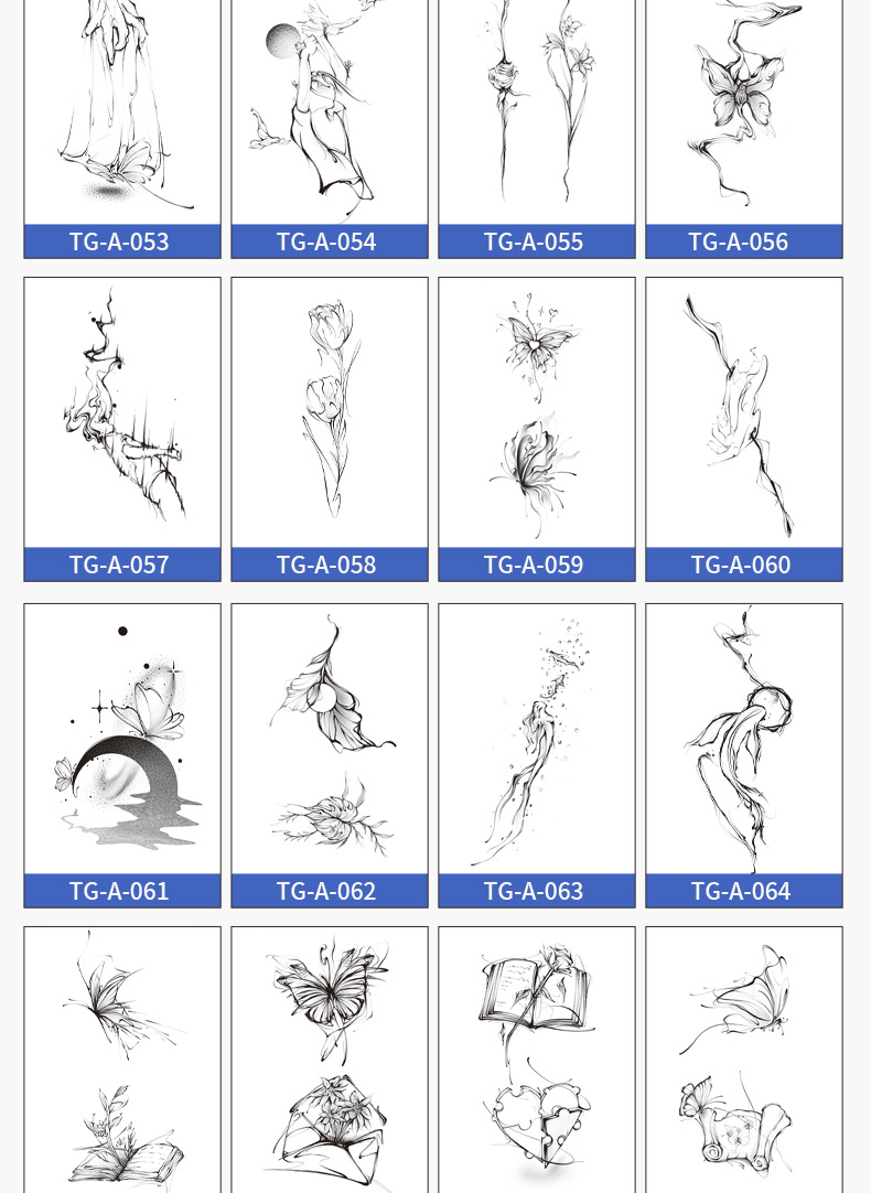 人気の越境商品 タトゥーシール 無地の花柄 英語文字 花 蝶々 ライン 転写シール タトゥー