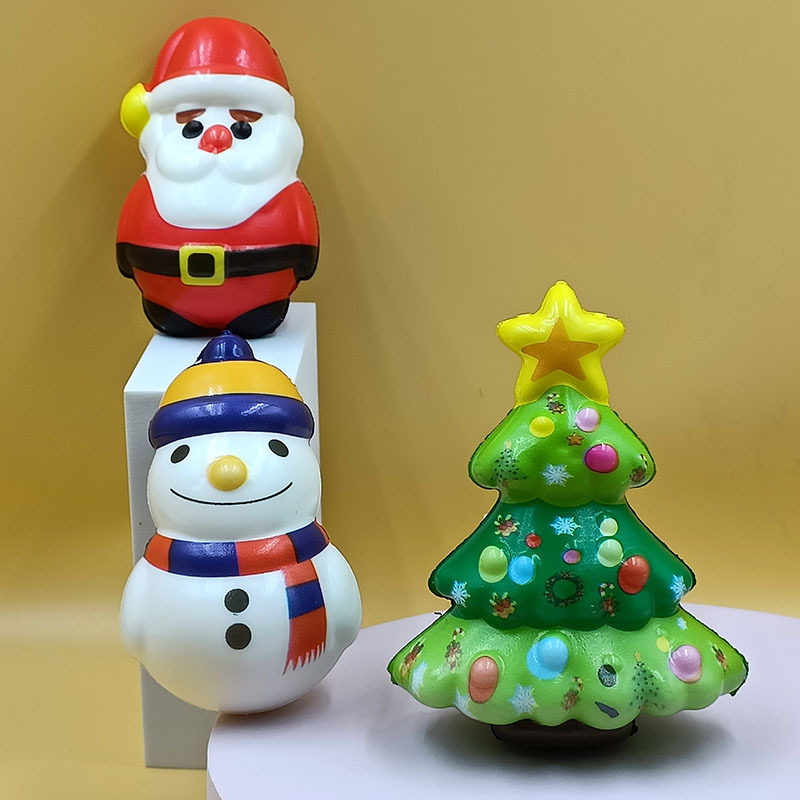 跨境慢回弹圣诞老人圣诞雪人圣诞树动物捏捏乐挂件发泄pu玩具减压