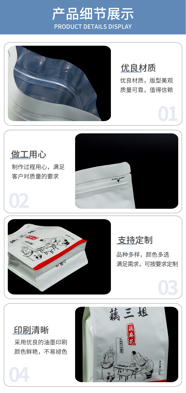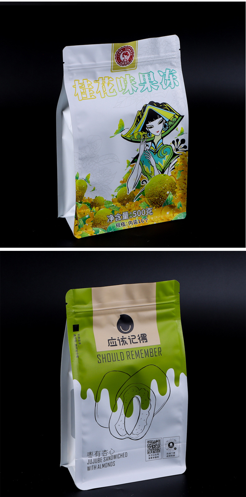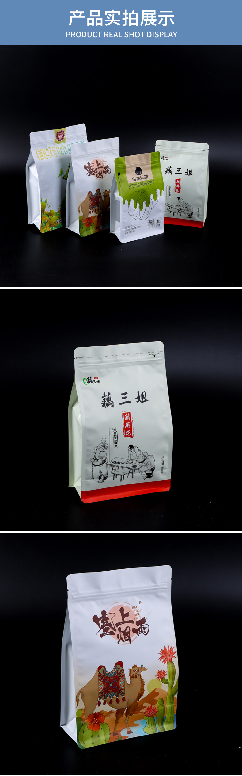 カスタマイズされたロゴ付き食品包装袋、8面シールビニール袋、自立式ジップロック袋、カスタマイズされたプラスチック食品袋、密封袋