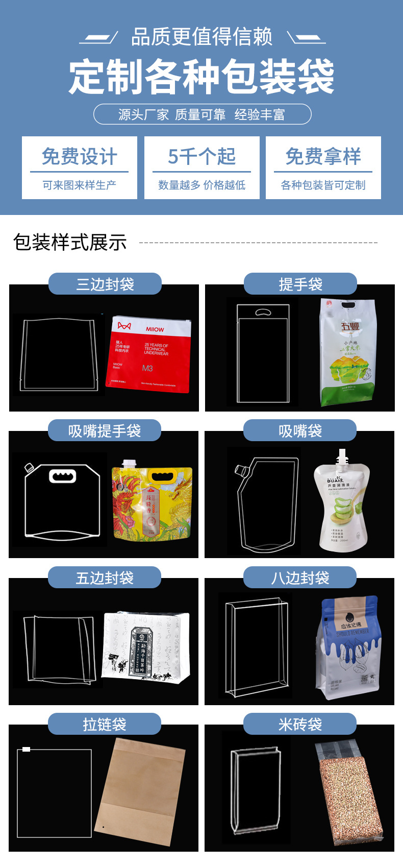 食品包装袋アルミ箔自立自己密封袋三辺封複合袋米干物間食密封袋カスタム