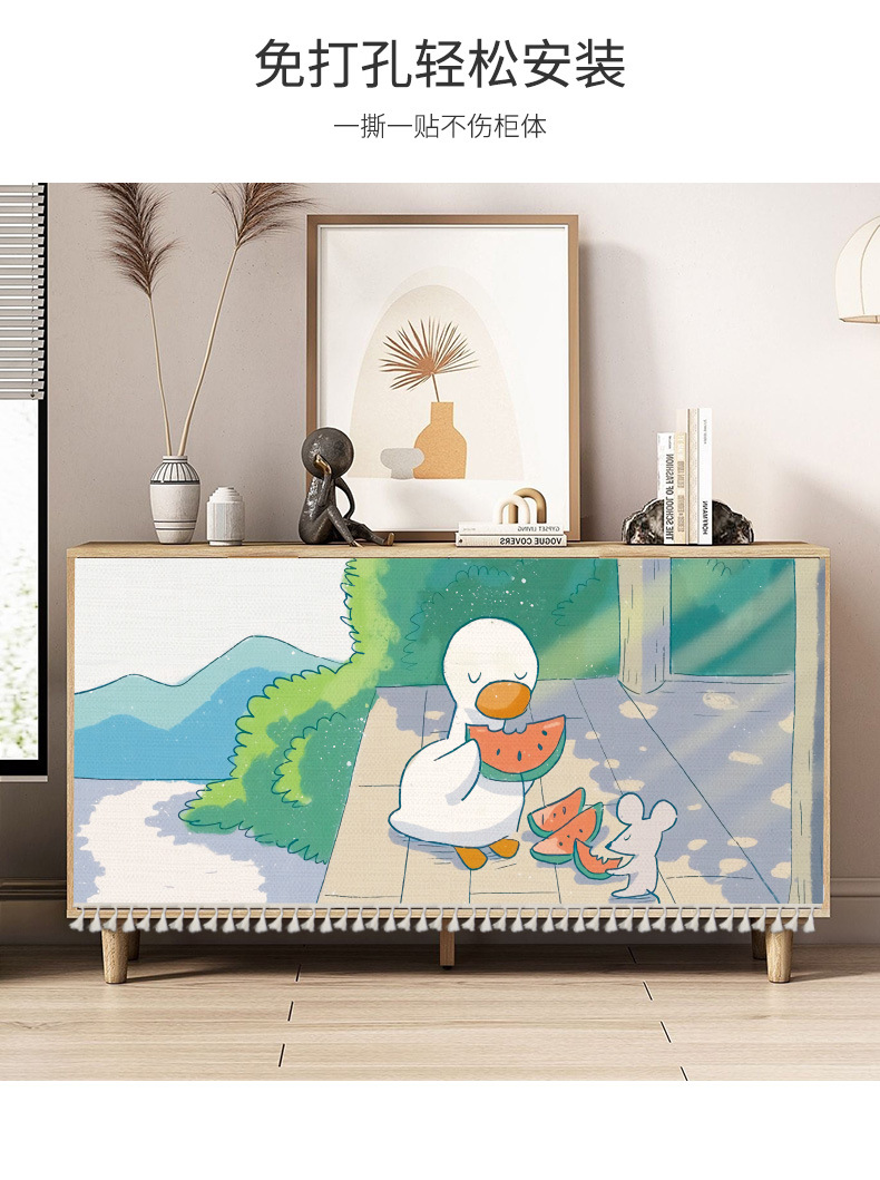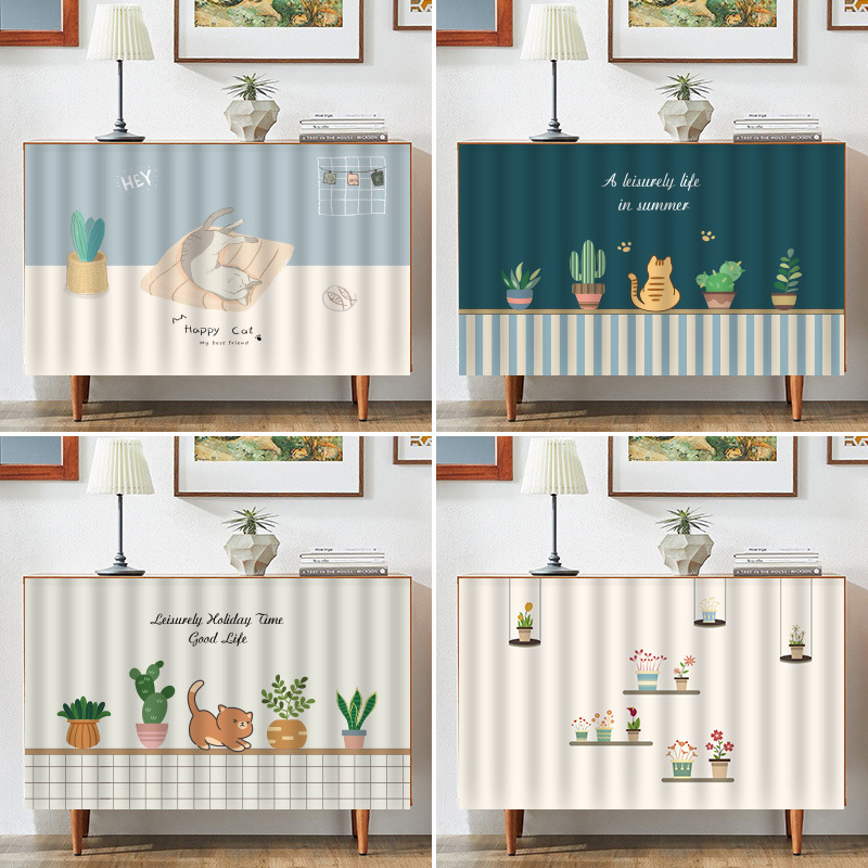 小清新柜帘遮挡帘自粘防尘餐柜书柜防尘遮丑帘布艺门帘