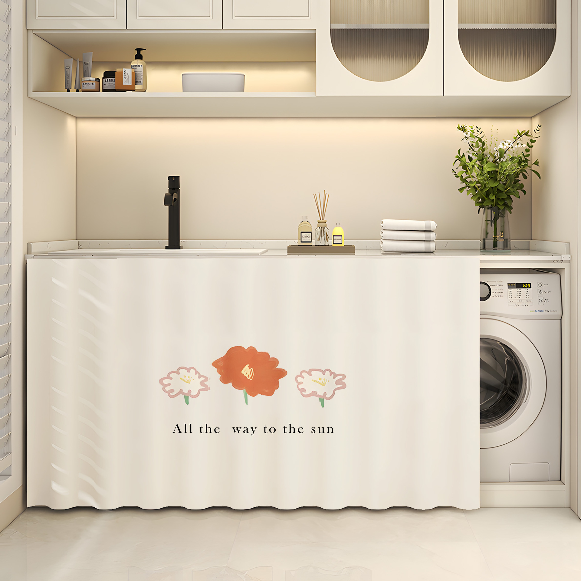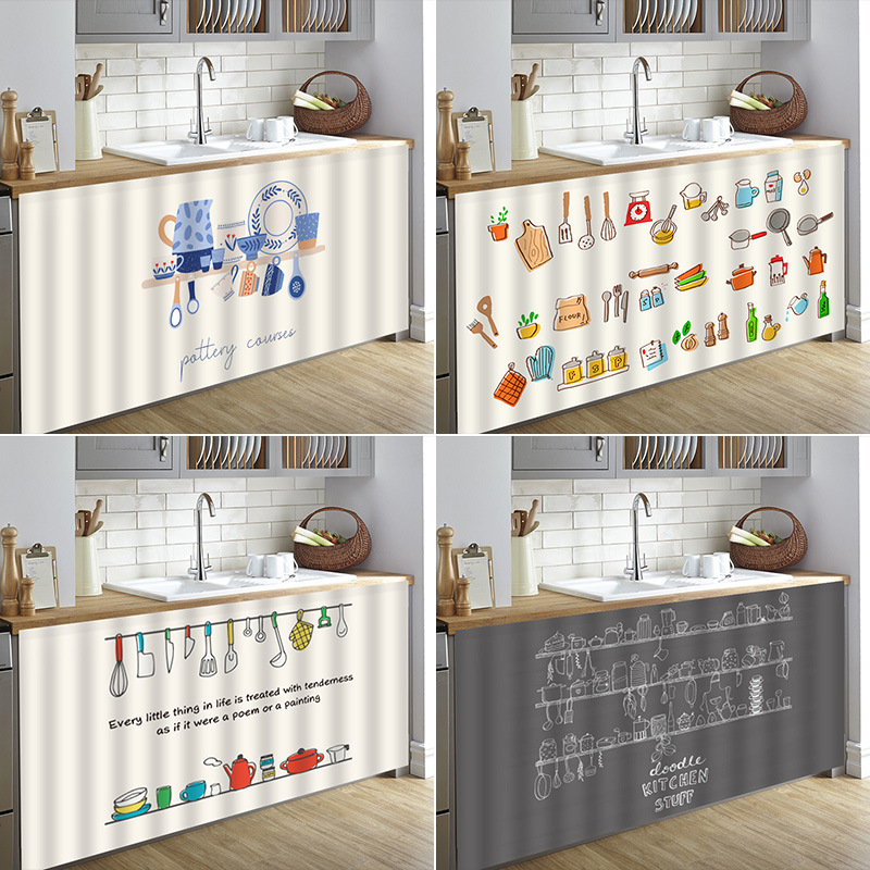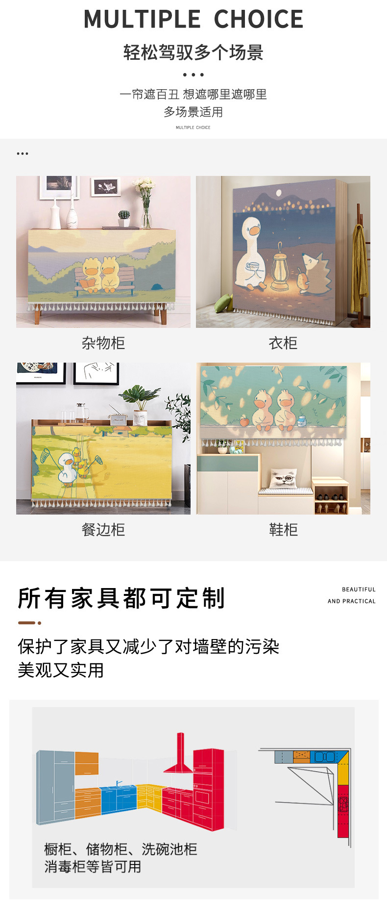 橱柜遮挡帘柜门帘柜子挡帘布厨房免打孔滑轨柜帘防尘杂物遮丑帘子