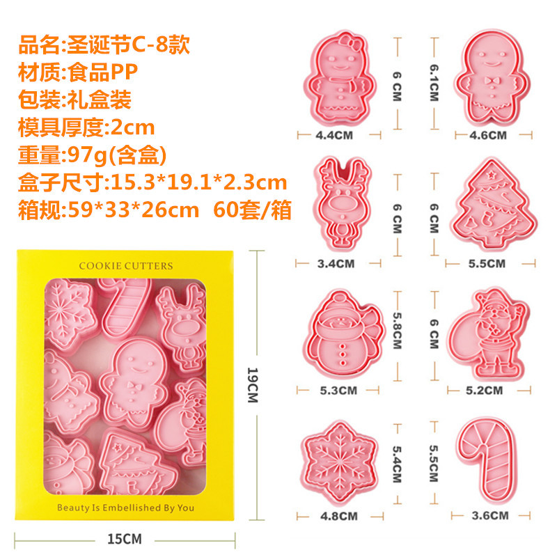圣诞节饼干模具塑料按压式家用套装烘焙压模3d立体糖霜曲奇翻糖