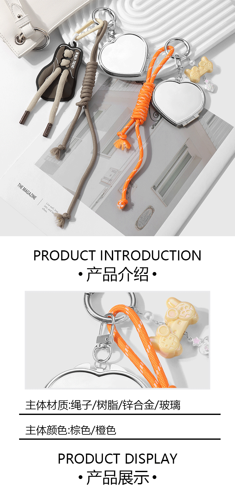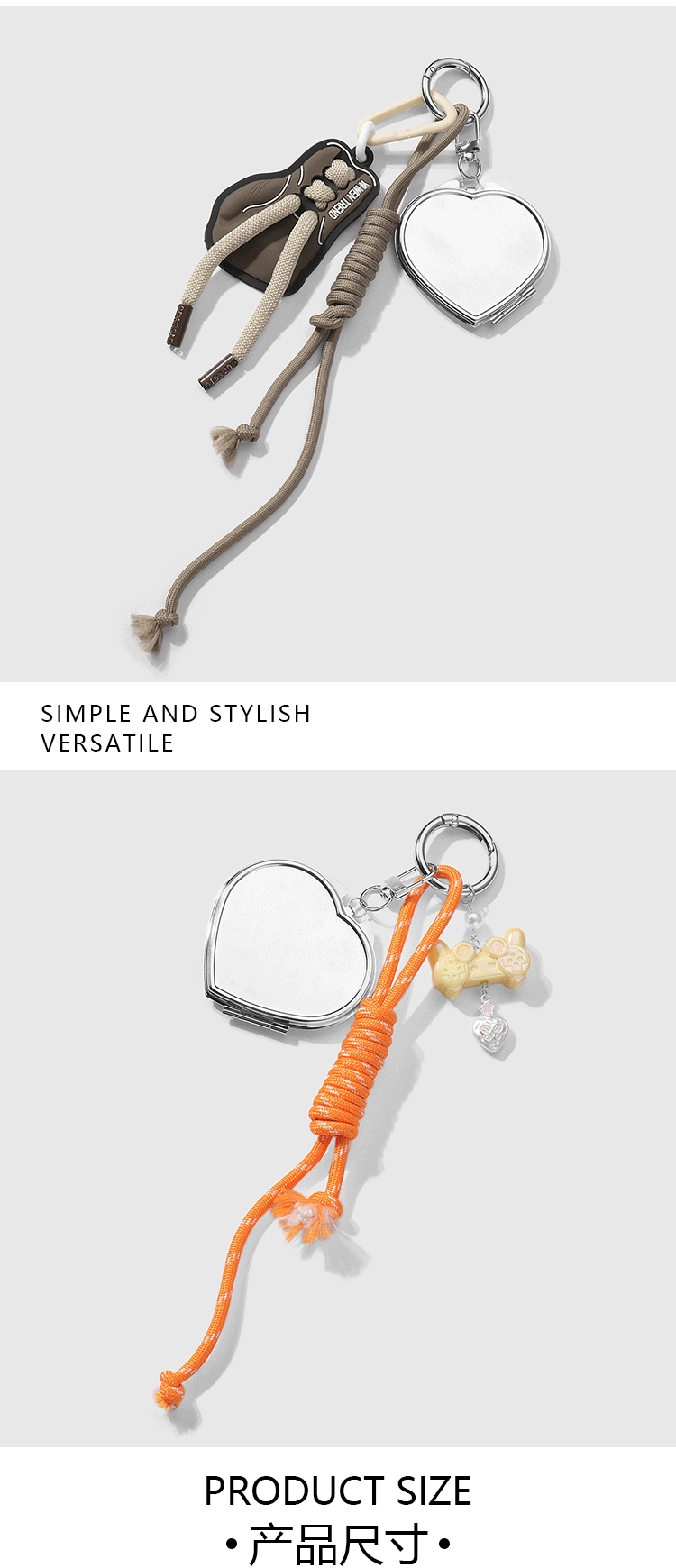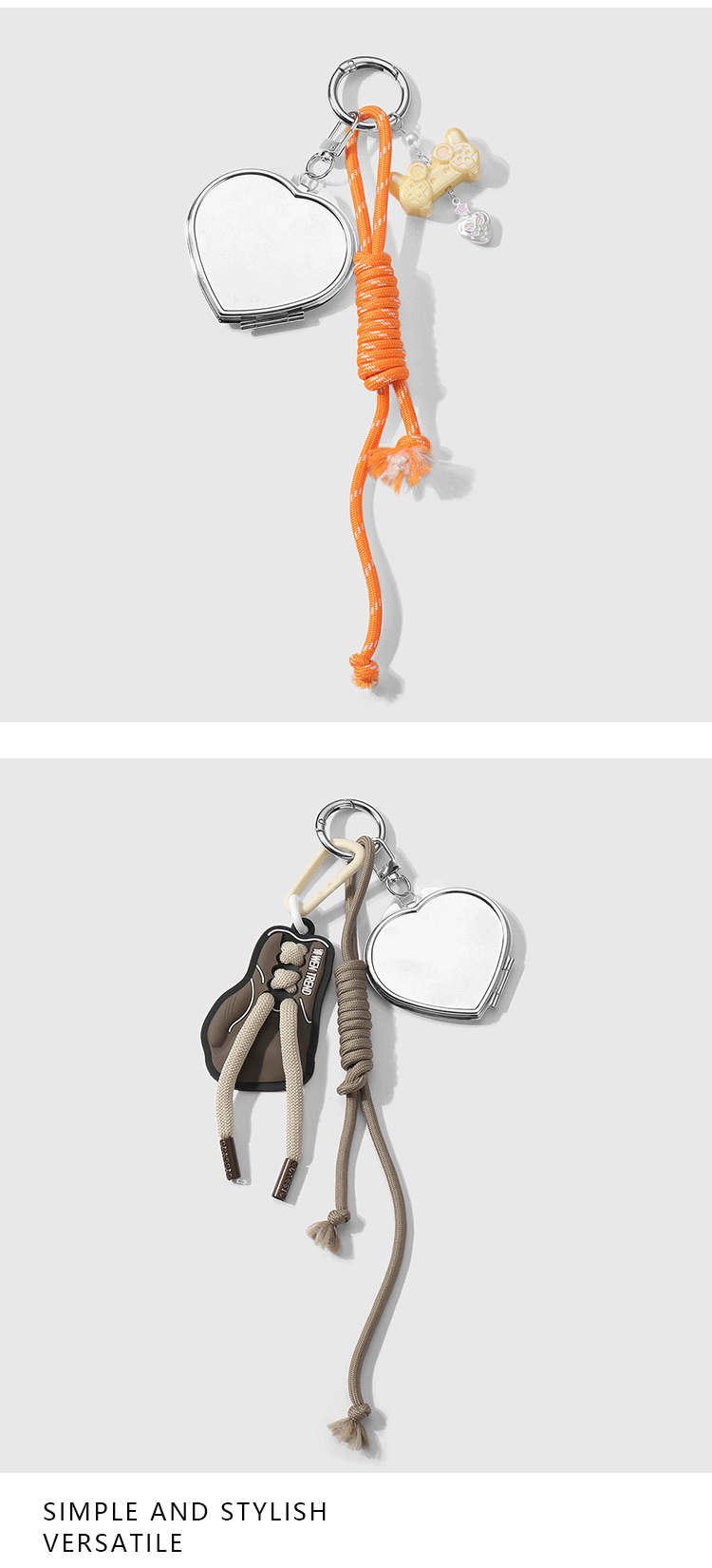 茶色の登山ロープ手袋ミラーキーホルダー 1 個,オレンジ色の登山ロープハンドルミラーキーホルダー 1 個