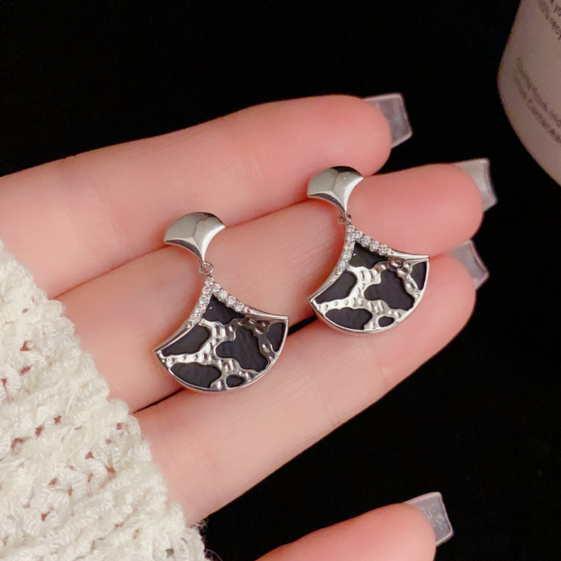 フランスのレトロなヒョウの紋様の扇形のイヤリングの女性s 925銀の針の小さい大衆の独特な百合の高級なデザイン感のイヤリングの卸売り
