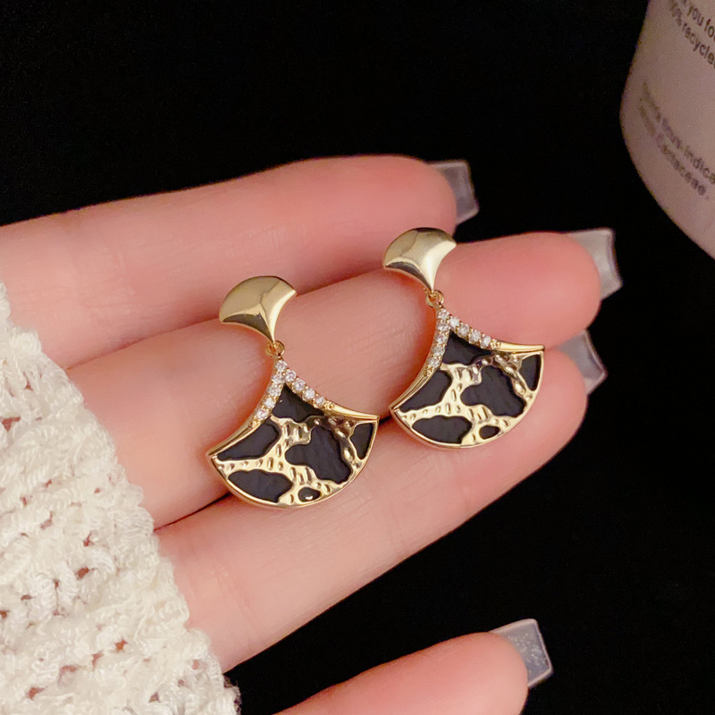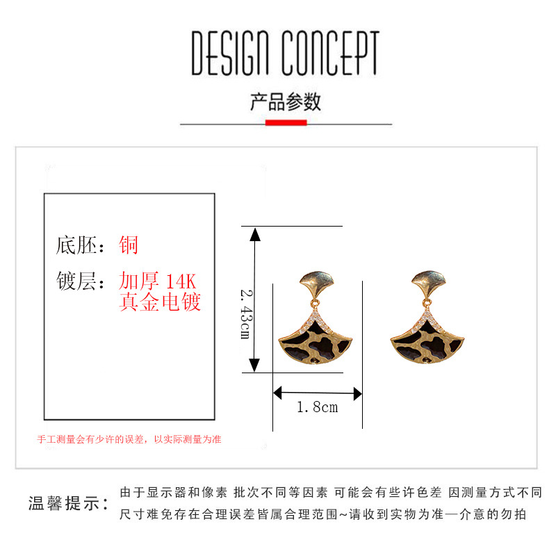 小众时尚复古镶钻咖色双面花瓣耳钩女个性轻奢独特设计感耳坠批发