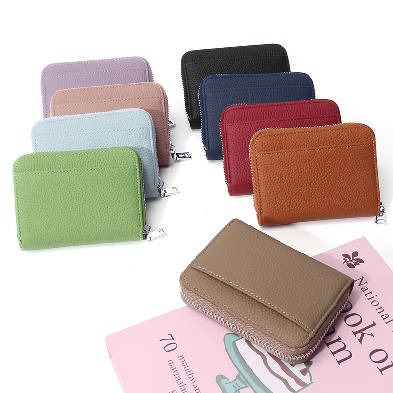 トップ層牛革rfid盗難防止カードカバー女性用ジッパー大容量オルガンゼロ財布コインバッグ