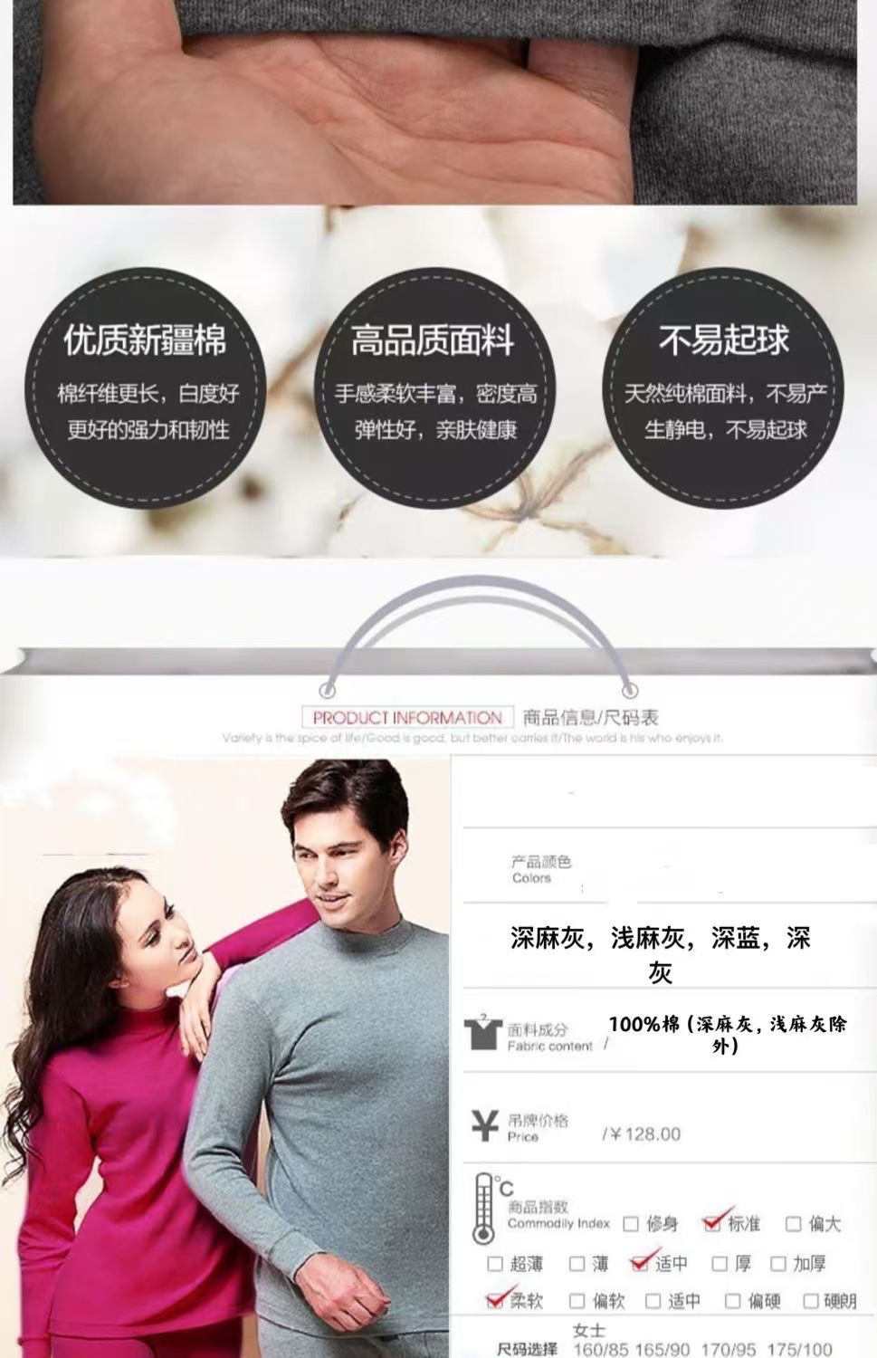 100%纯棉秋衣秋裤男女套装打底内穿舒适棉毛高档情侣保暖内衣薄款
