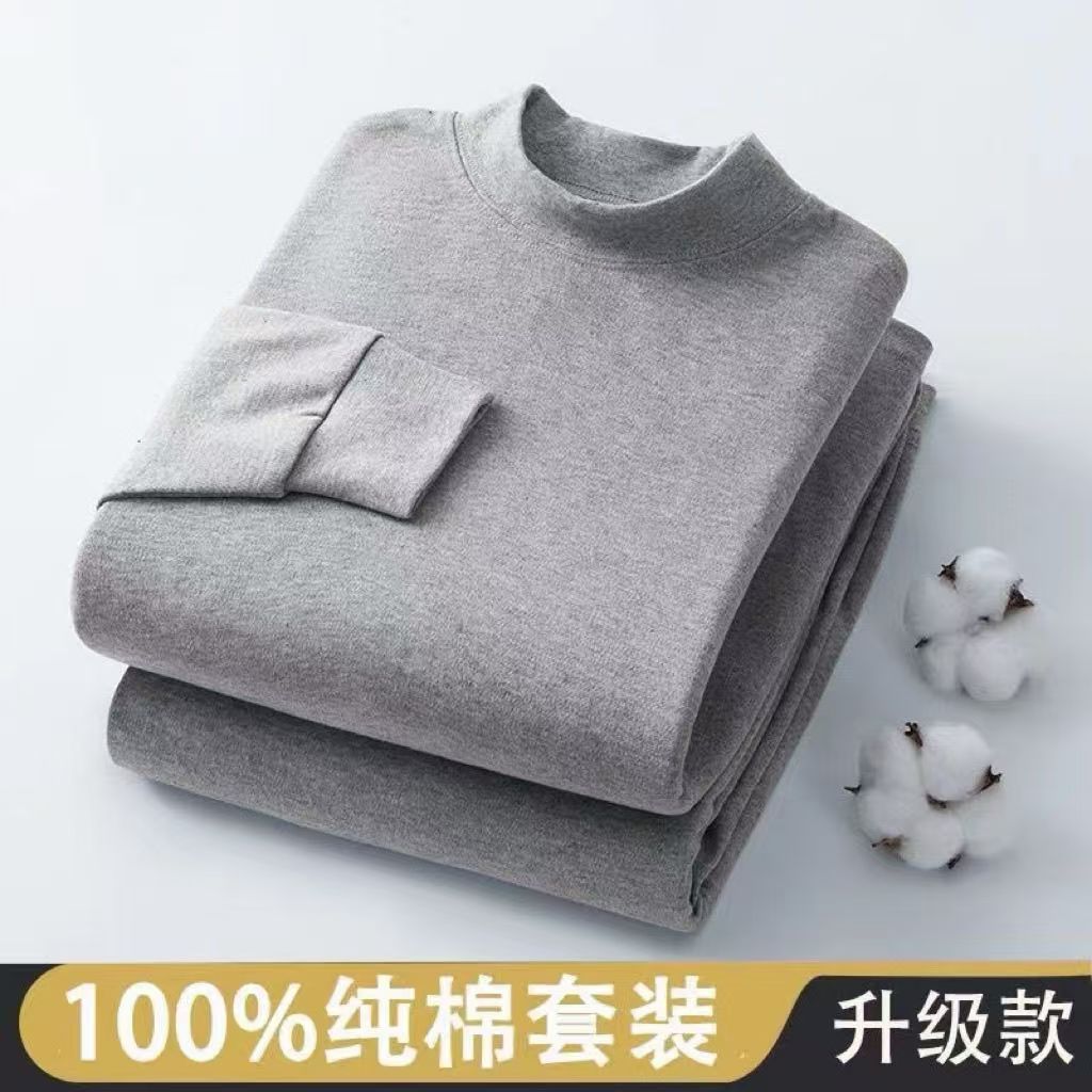 【100% 純綿】男性秋衣秋ズボンセット中高襟綿打底中高年青年保温下着
