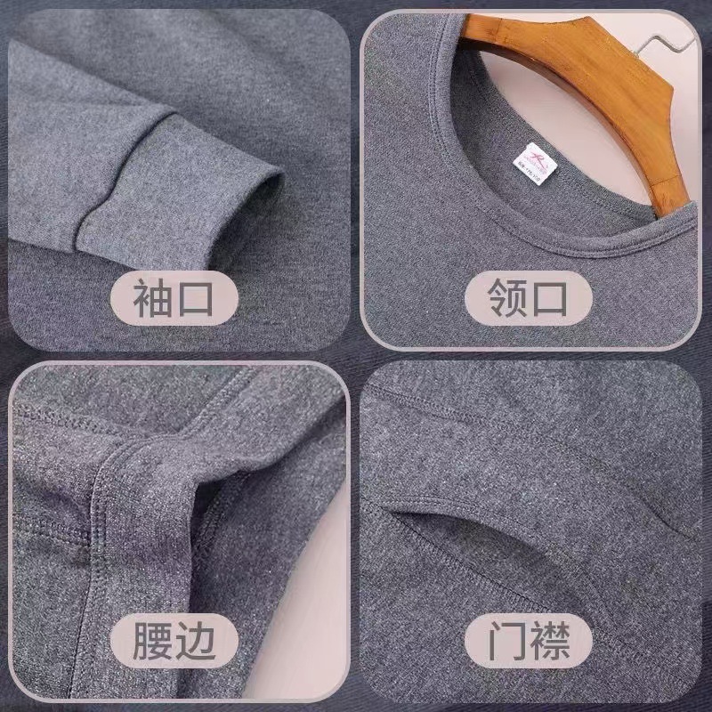 カシミヤシルク秋冬保温セット男性秋衣秋ズボン丸襟両面研磨毛発熱無痕厚付丸襟