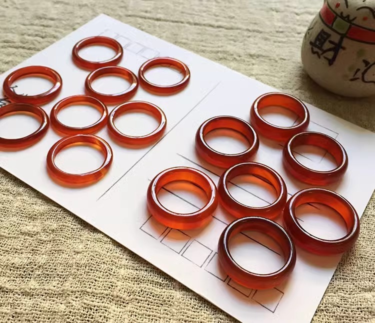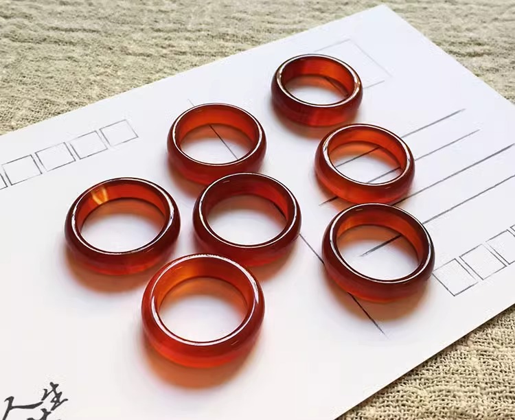 天然の玉髄の指輪の赤い瑪瑙の板戒の人差し指の尾戒の男女の玉の走る環の水晶の円戒