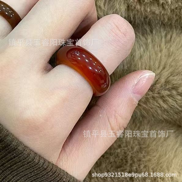 天然の赤い瑪瑙の石の指輪の女性の大衆の復古の個性は簡単で、百合の気質のファッションの指環の戒子のins風になります。