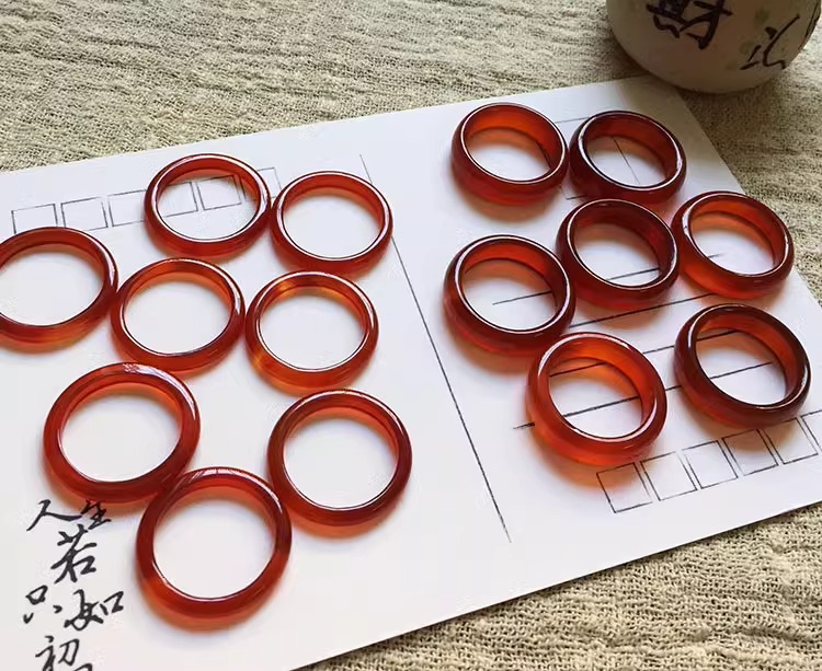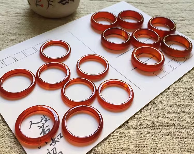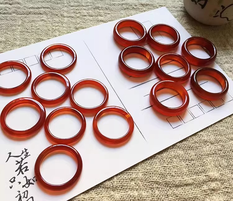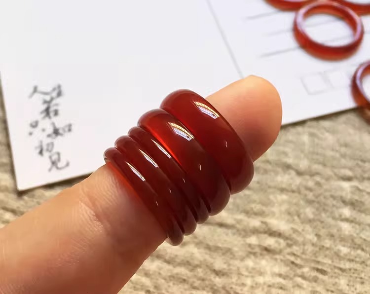 国風素輪指輪小衆戒輪天然瑪瑙玉髄氷種細指輪蜜桔庫里藍瑪瑙指輪