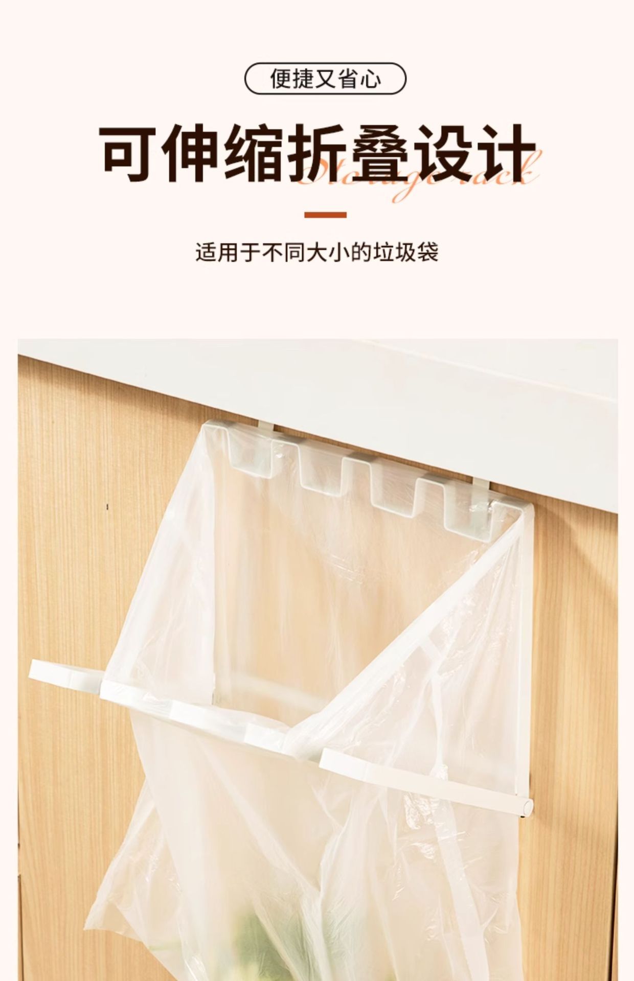 折り畳み可能なゴミ棚キッチンキャビネットドア吊り式ビニール袋フック壁掛け鉄芸ゴミ袋スタンド琴萱