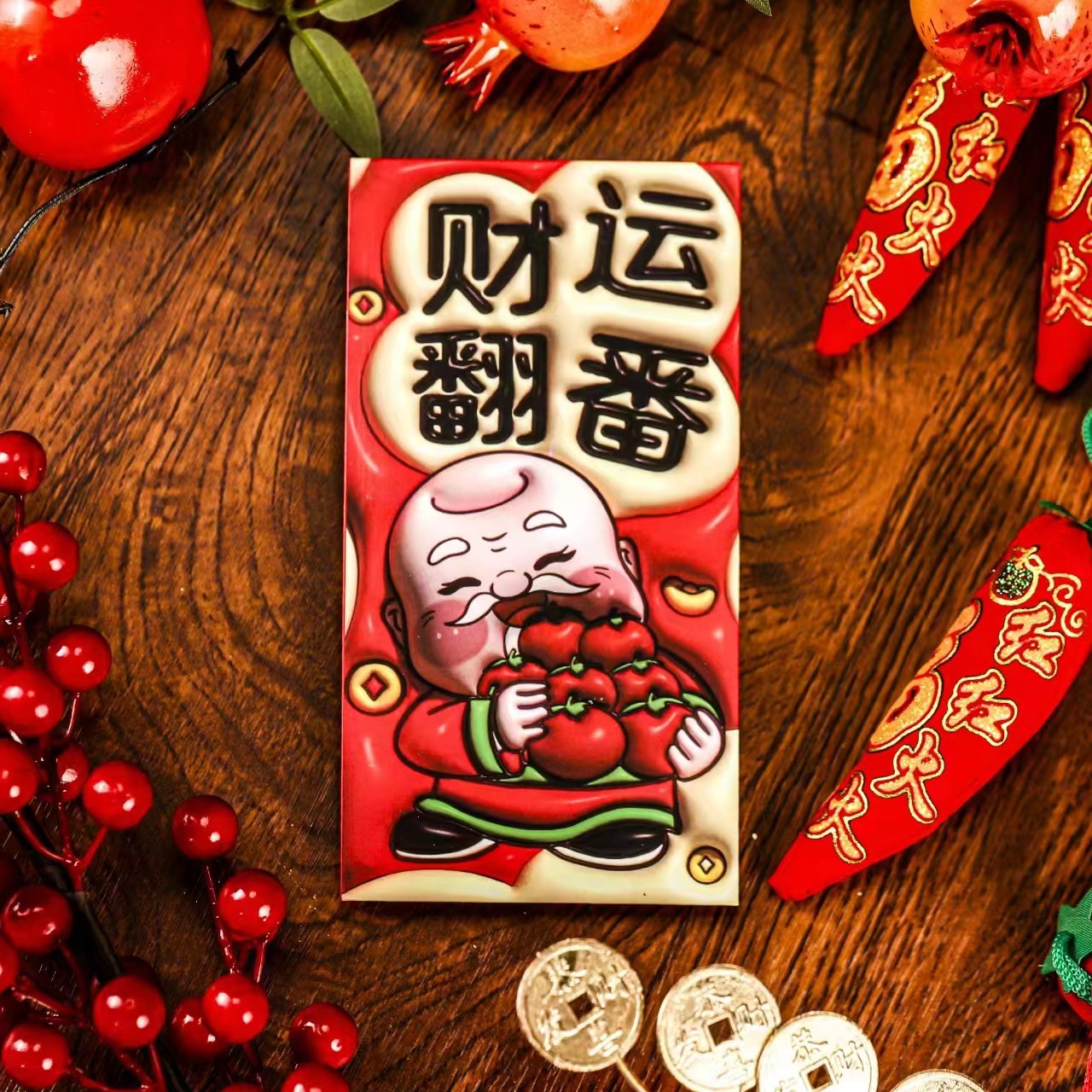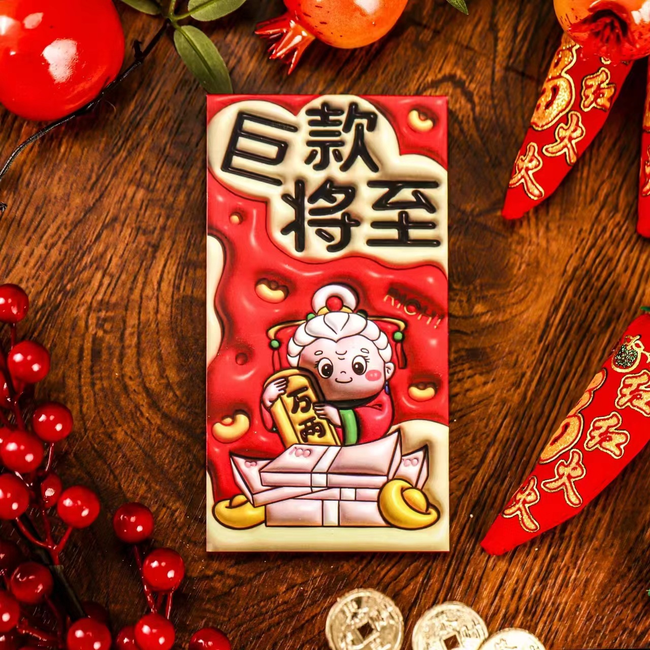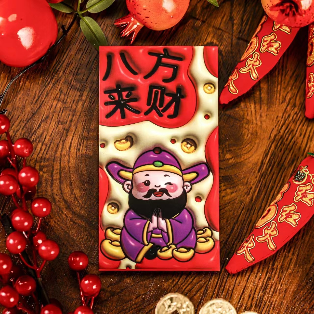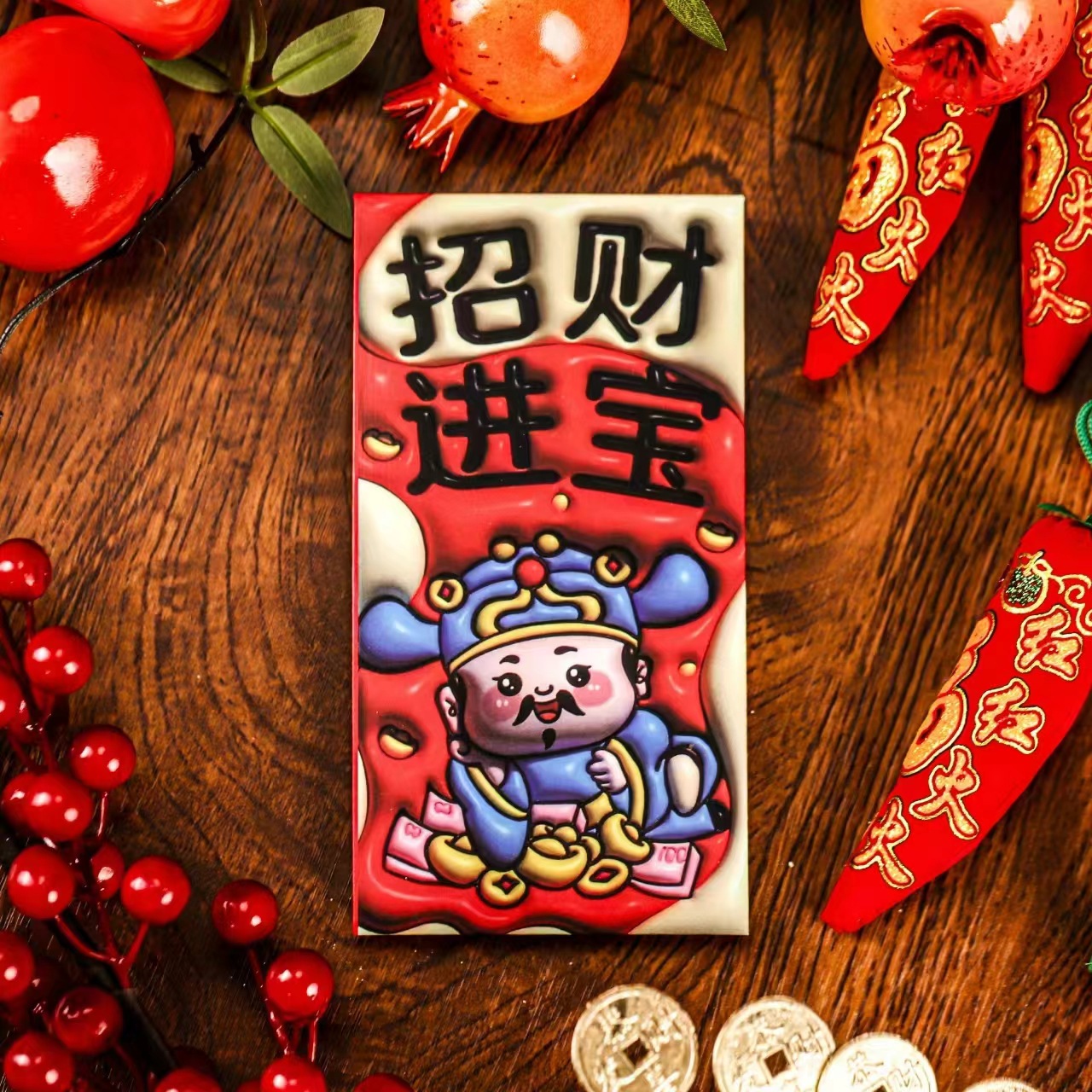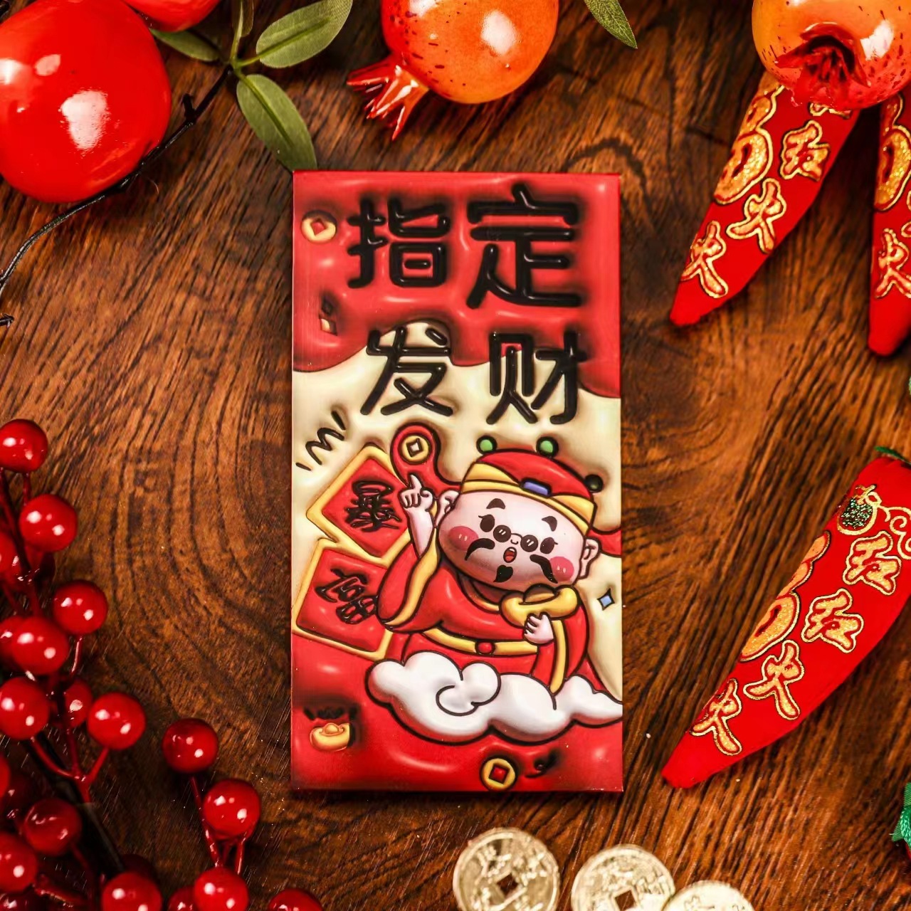 2025年春節創意紅包蛇年新作カラー印立体膨張利は千元の加歳財神紅包袋です。