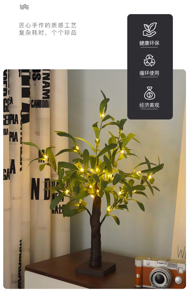 台州メーカークロスボーダー緑の葉オリーブの木ライト発光ツリーledツリーライトクリスマス祭り装飾ライトオリーブの葉