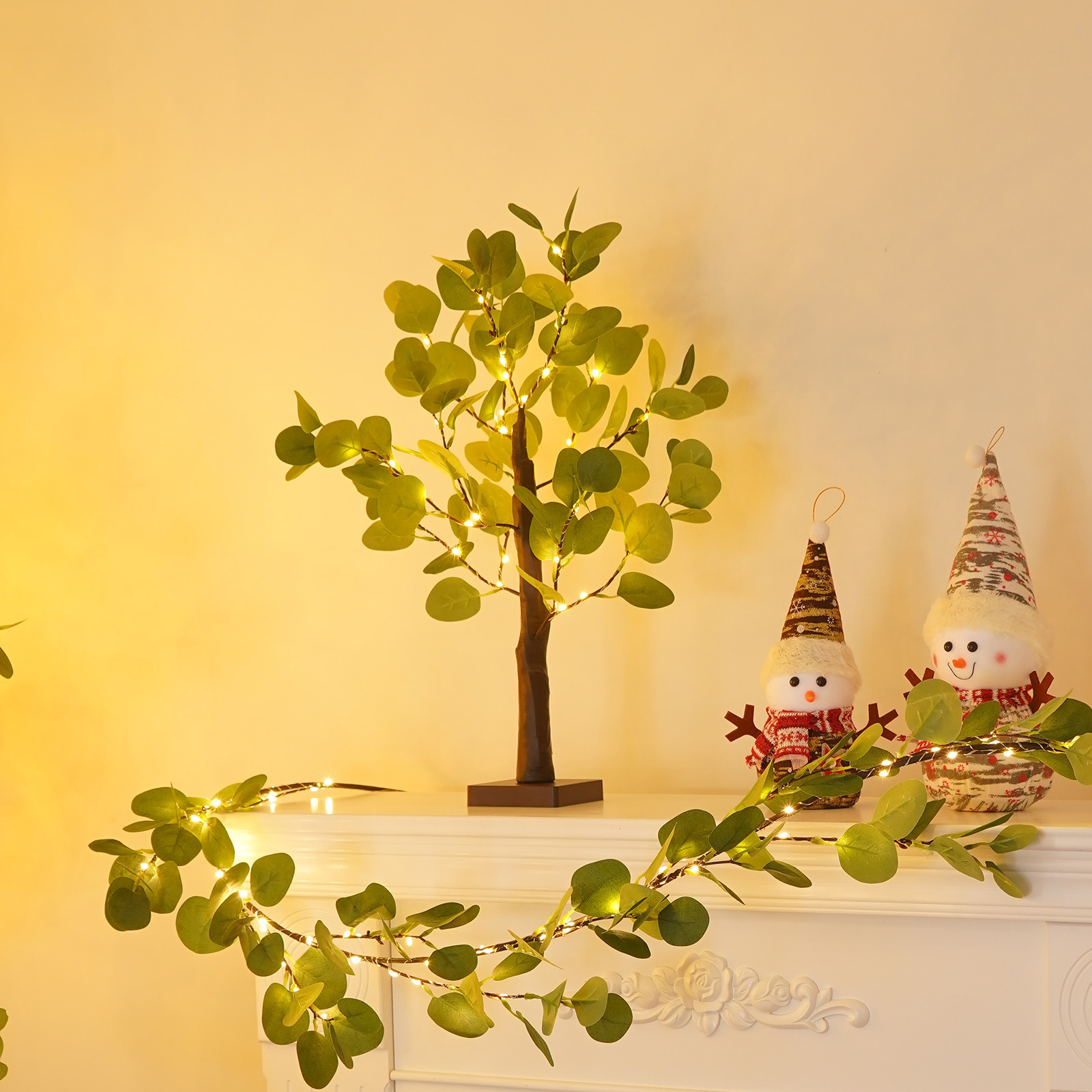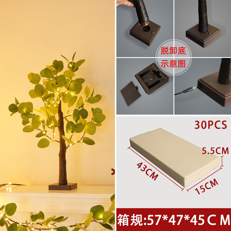 緑植家装銅線灯尤加利樹灯祝日パーティーイベント装飾灯シミュレーション発光木