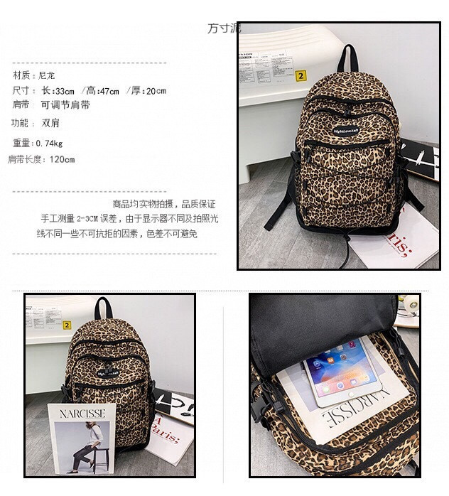 暗黒風揚げ街豹紋ランドセル男女韓国版ins大容量百合レジャー学生ランドセル潮男女