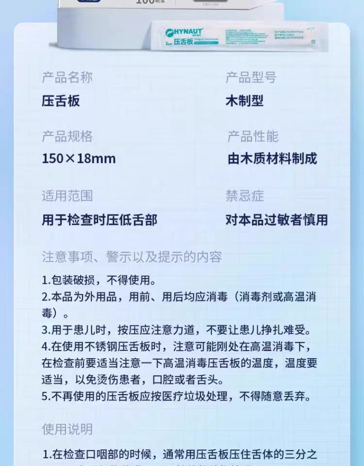 海诺医用压舌板木制型一次性口肌训练器口腔检查独立装压舌棒