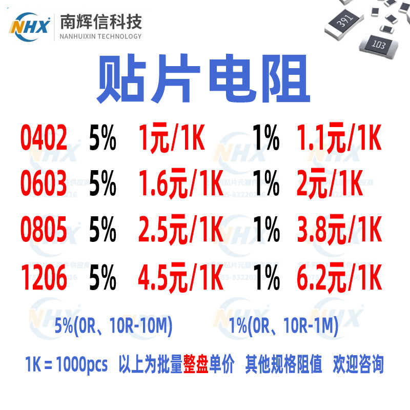 チップ抵抗1206抵抗精度 ± 5 0R 10r-10m抵抗値がそろっています。