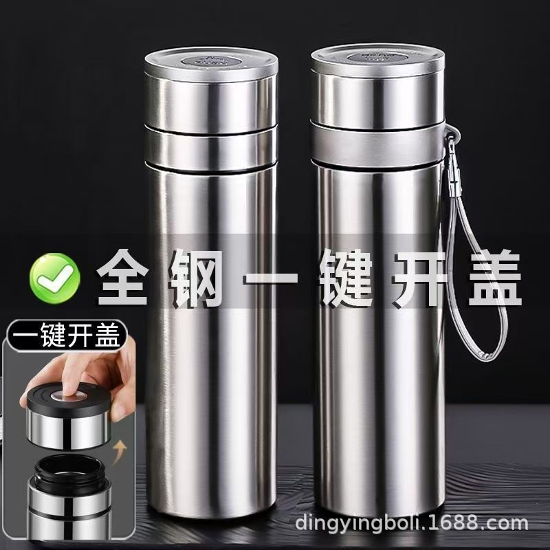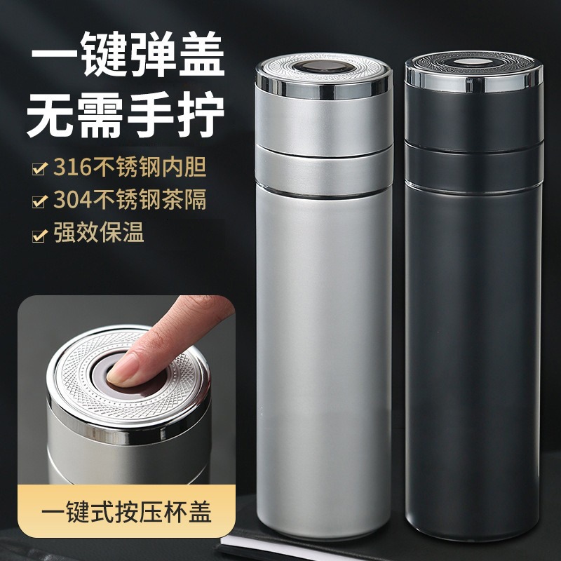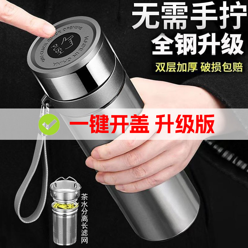 全钢316锈钢保温杯一键开盖车载男新高档速开泡茶杯茶水分离杯子