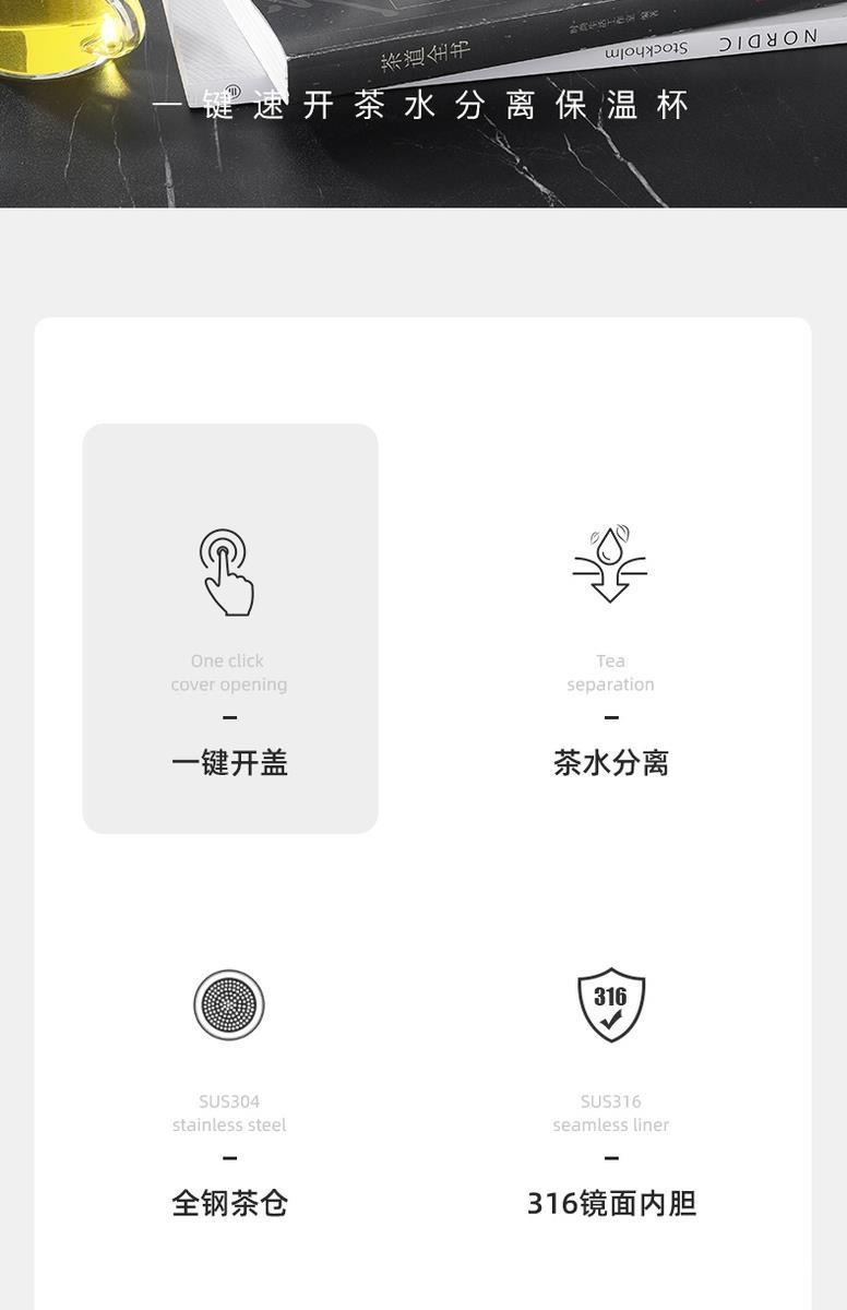 ワンキー速開保温カップ316ステンレス茶分離カップ携帯カップビジネス車載カップ