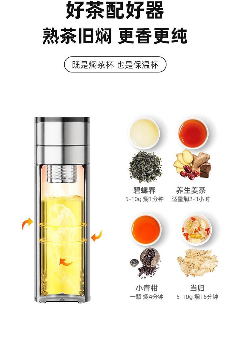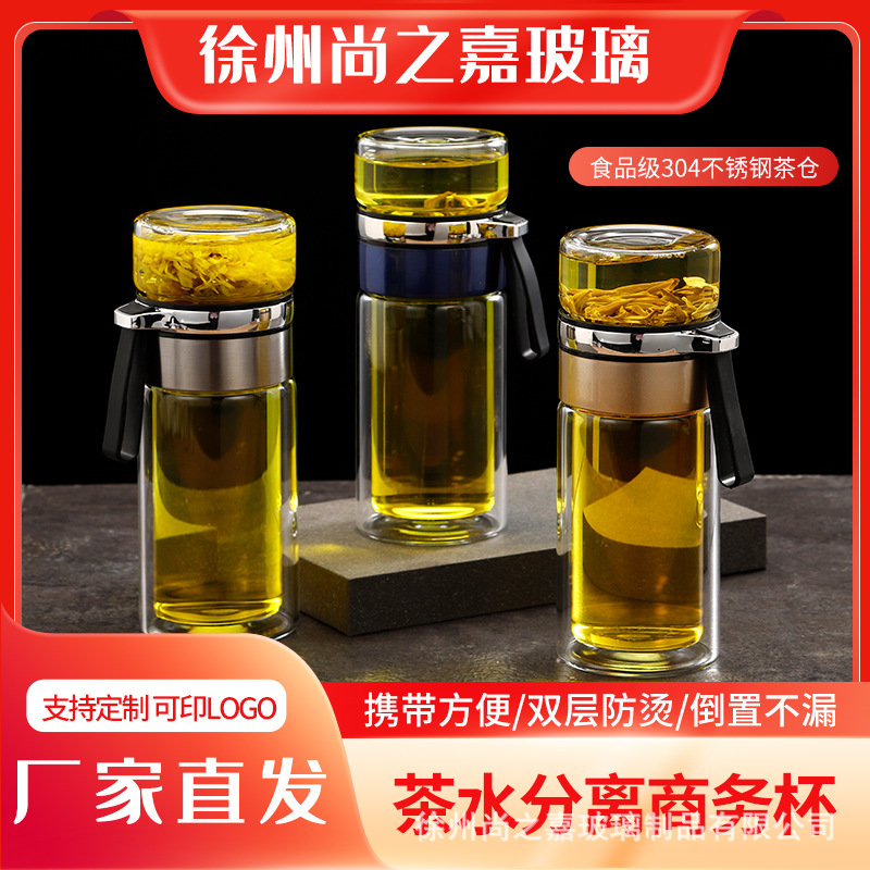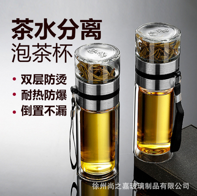 お茶分離カップ二層高ホウ素シリコンガラス泡カップビジネス車載旅行携帯カップ耐高温カップ
