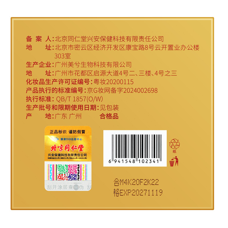 北京同仁堂内廷上用黄芪抗皱嫩肤免洗睡眠面膜100ml