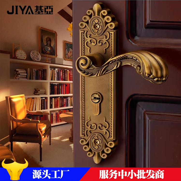小50双軸受部屋のドアロックは寝室内の静音ロック体ヨーロッパ式黄古銅鋼実木門ロック