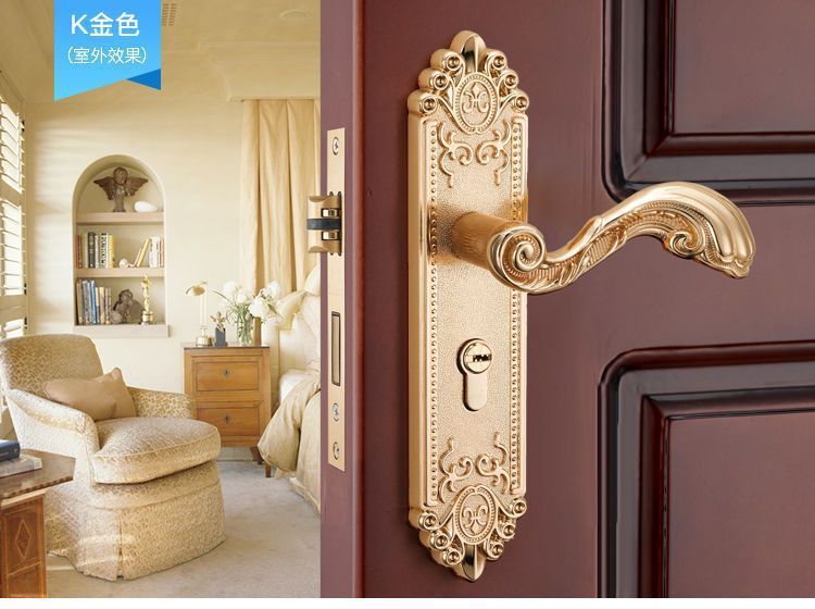 室内ドアロック家庭用ロック具実木金色寝室ドアロック良質亜鉛合金部屋静音機械ドアロック