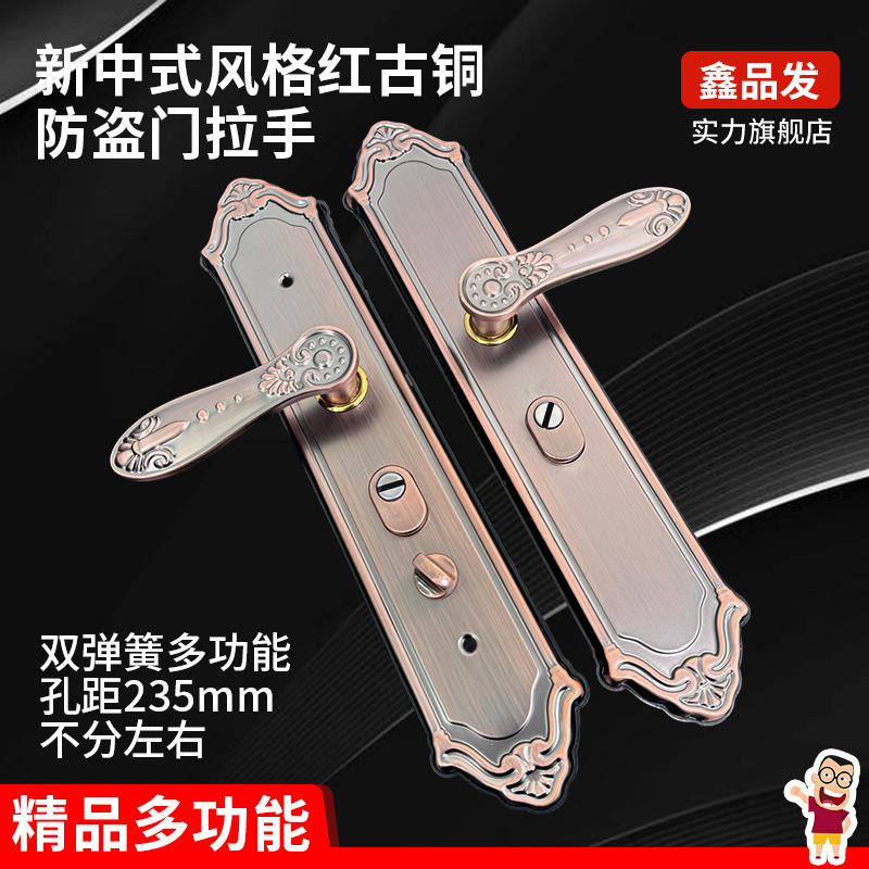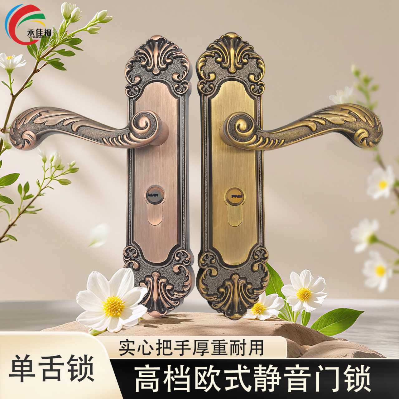 永佳福室内ドアロック静音片舌ドアロック具赤古銅家庭用ロック寝室部屋実木ドアロック