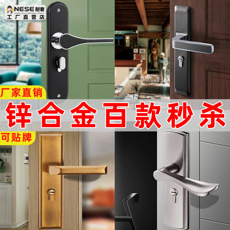 耐奢锌合金室内执手木门锁厂家静音分体锁具房间门锁卧室黑色磁吸