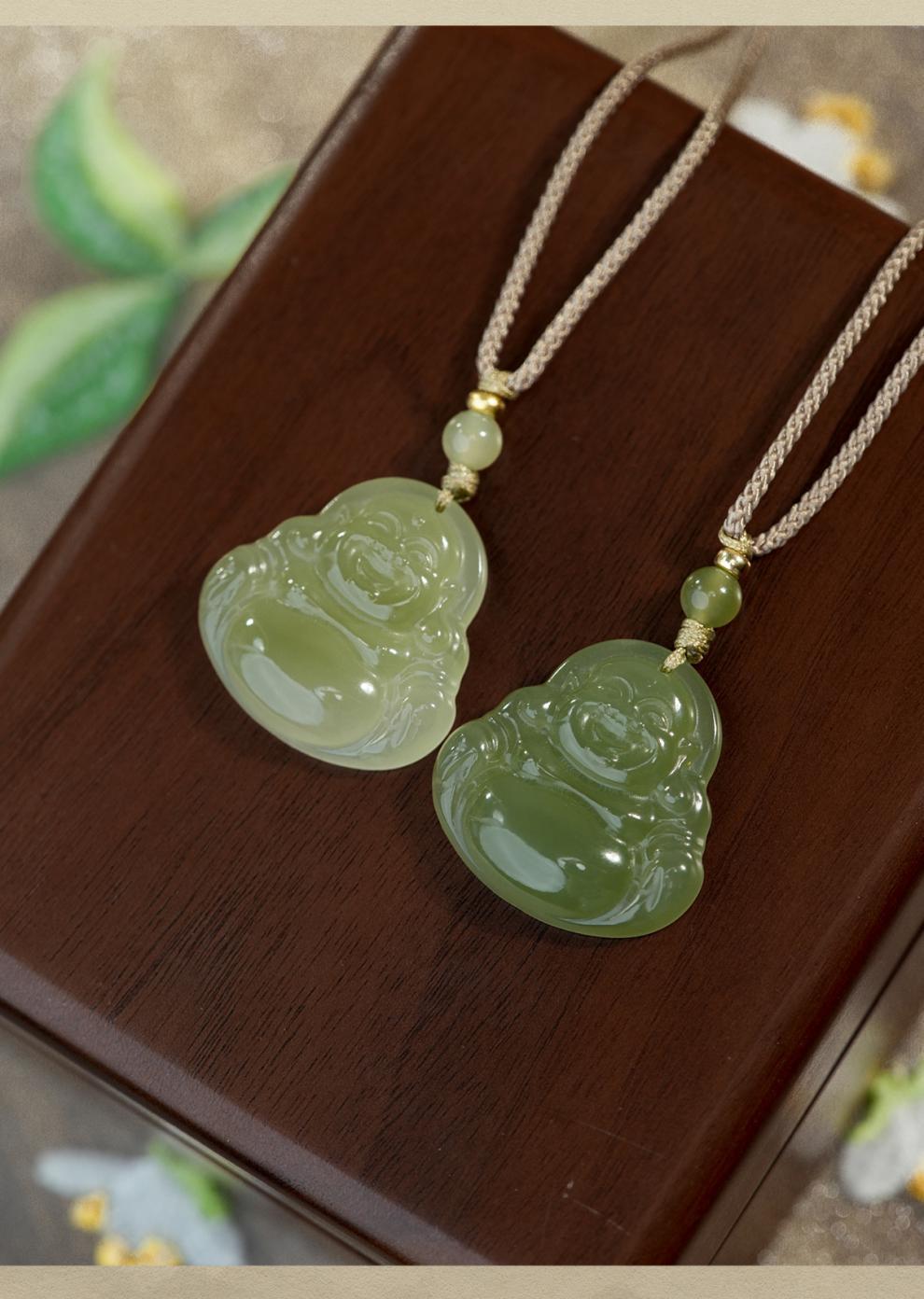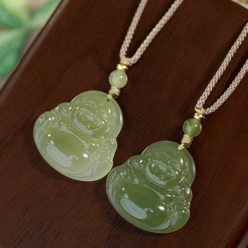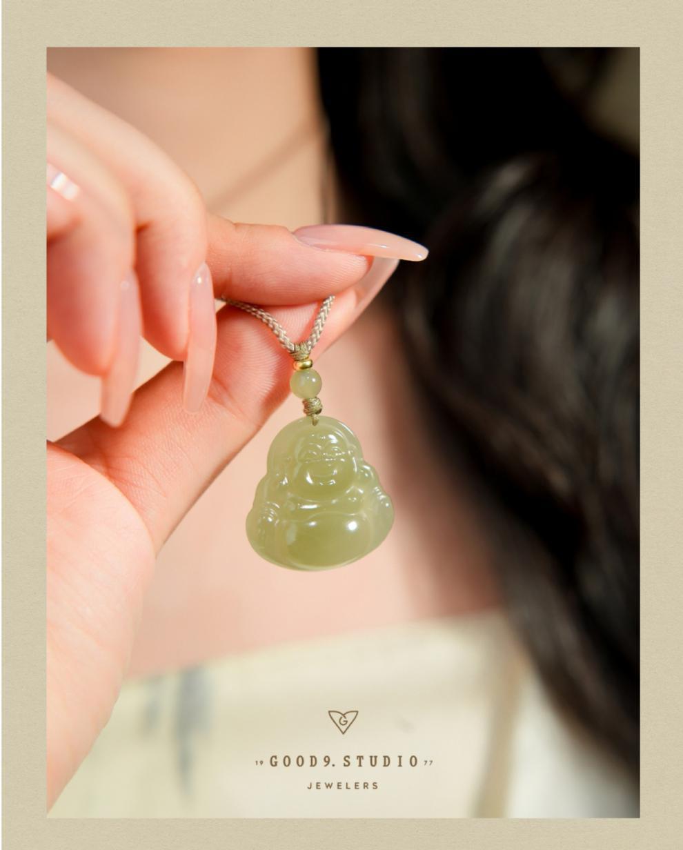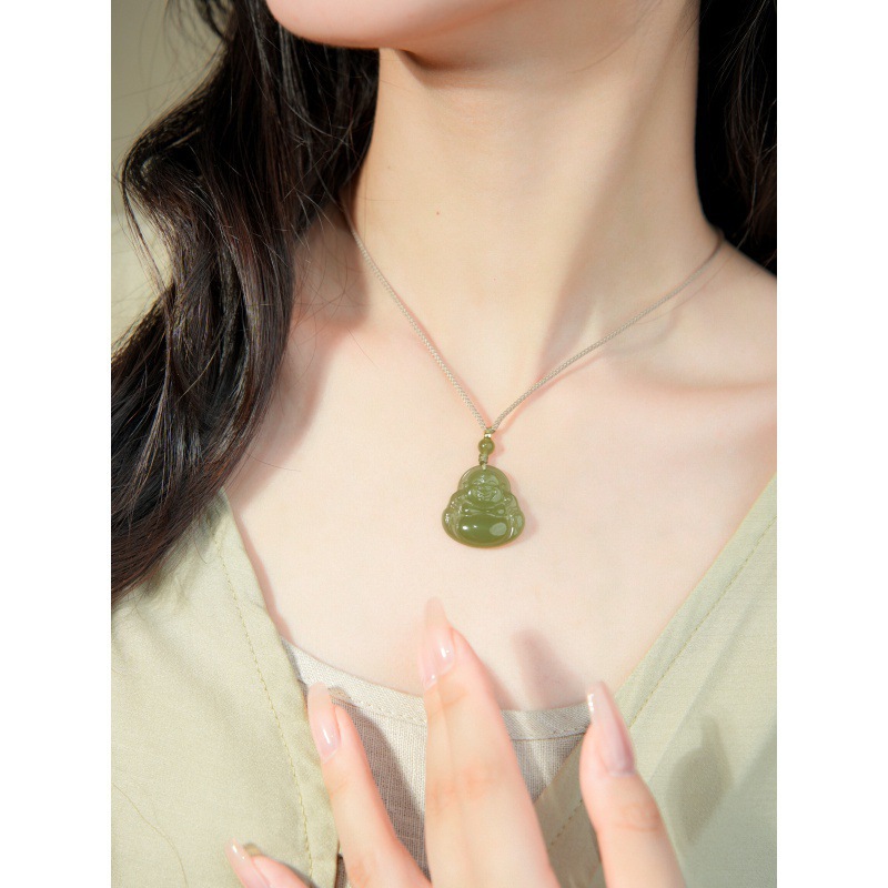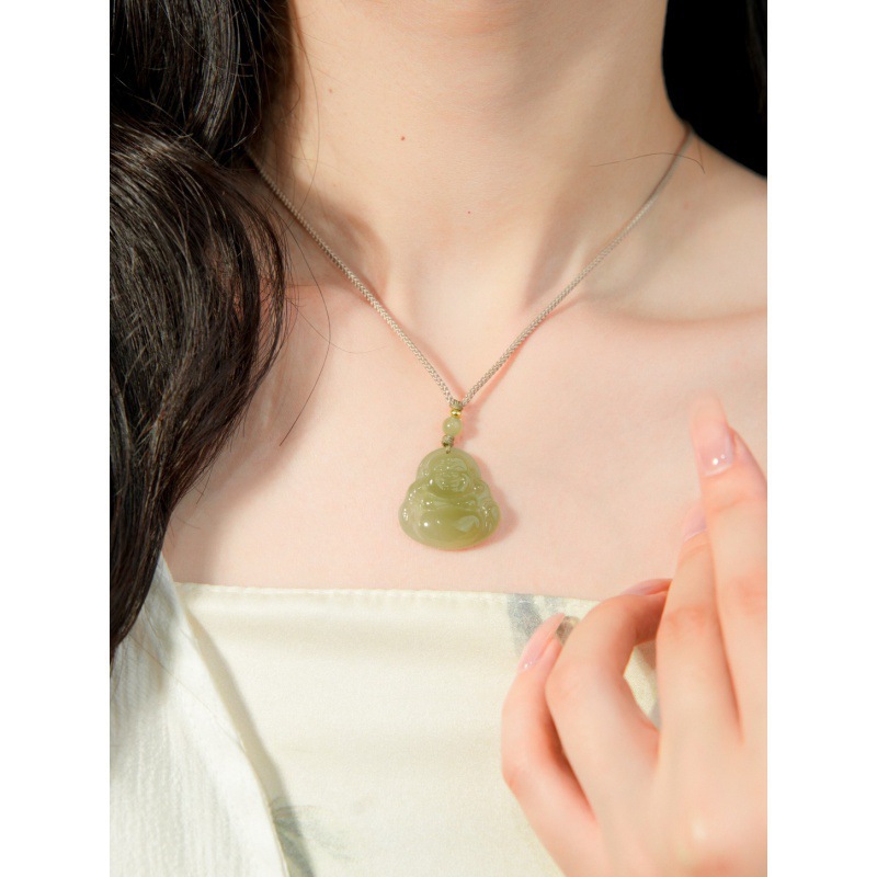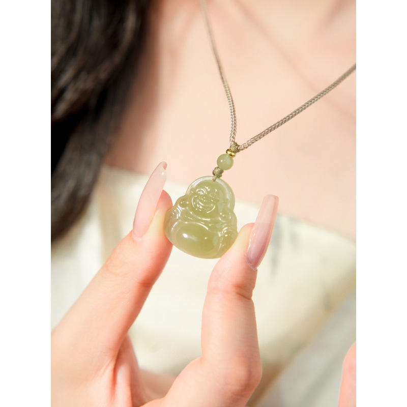 オリジナル保真天然和田玉ペンダント女性弥勒仏大腹笑仏ネックレス老坑玉佩玉卸売り