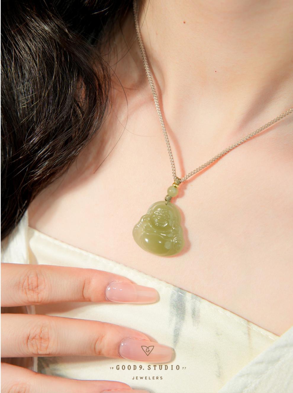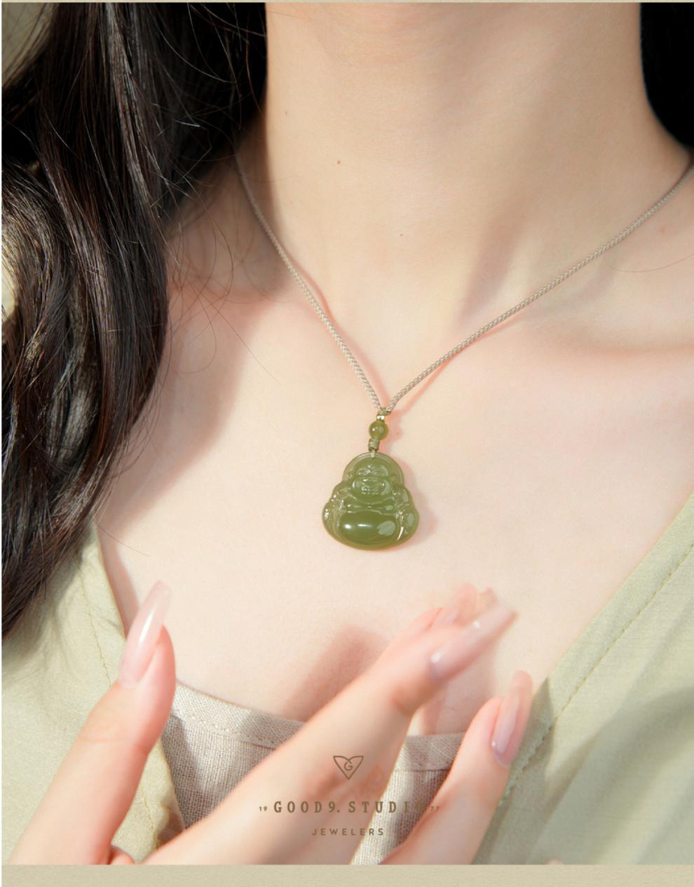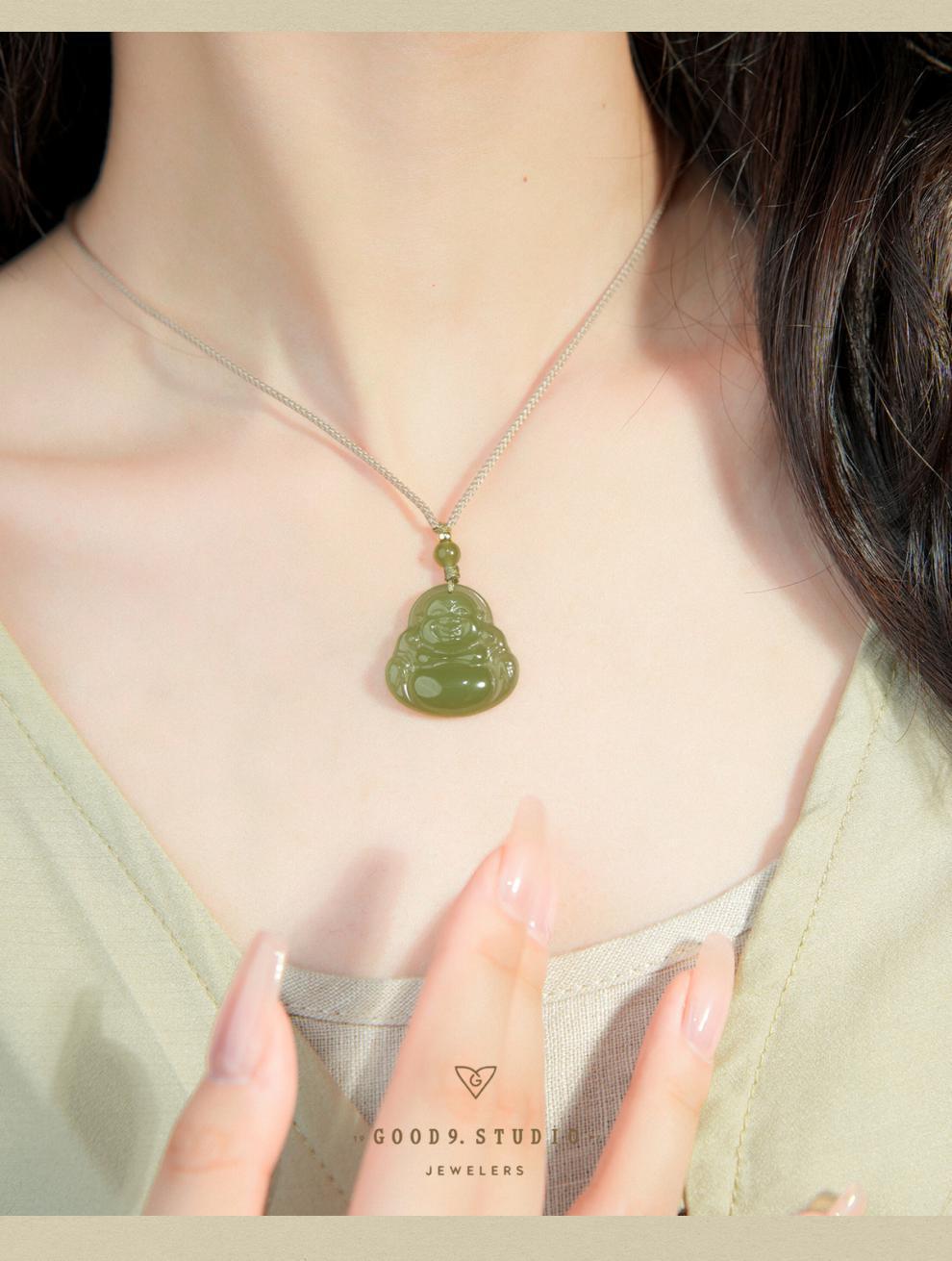 オリジナル保真天然和田玉ペンダント女性弥勒仏大腹笑仏ネックレス老坑玉佩玉卸売り