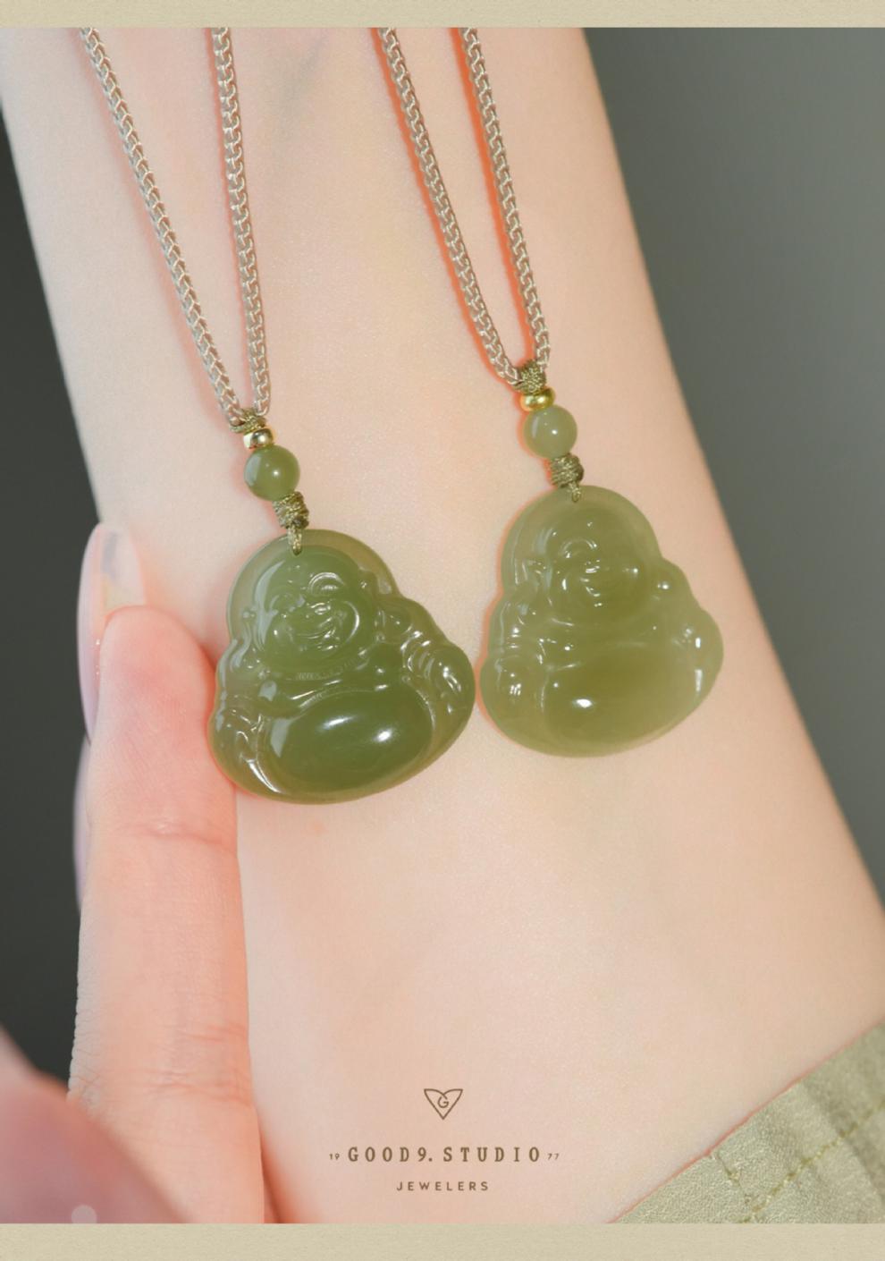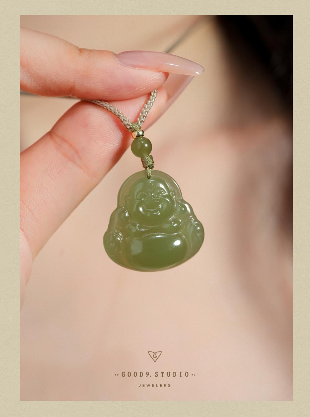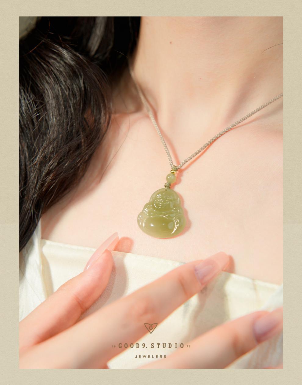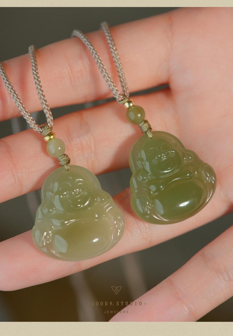 オリジナル保真天然和田玉ペンダント女性弥勒仏大腹笑仏ネックレス老坑玉佩玉卸売り