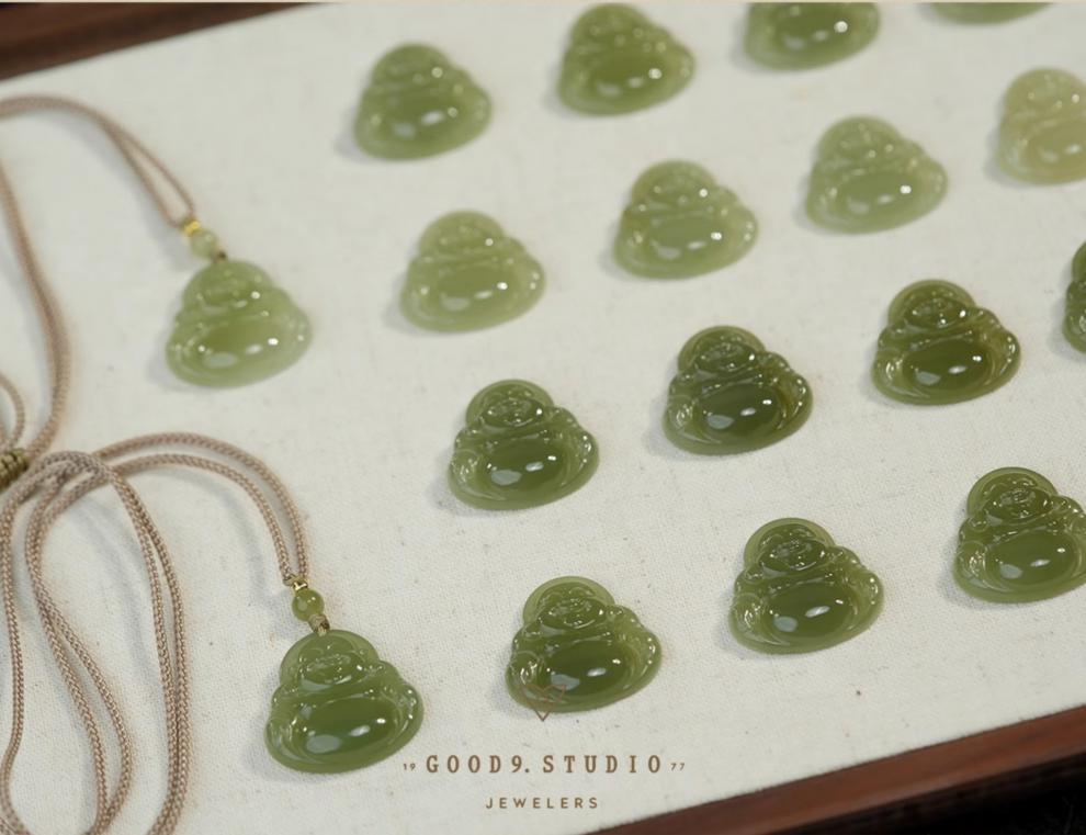 ホータン翡翠青透弥勒仏
