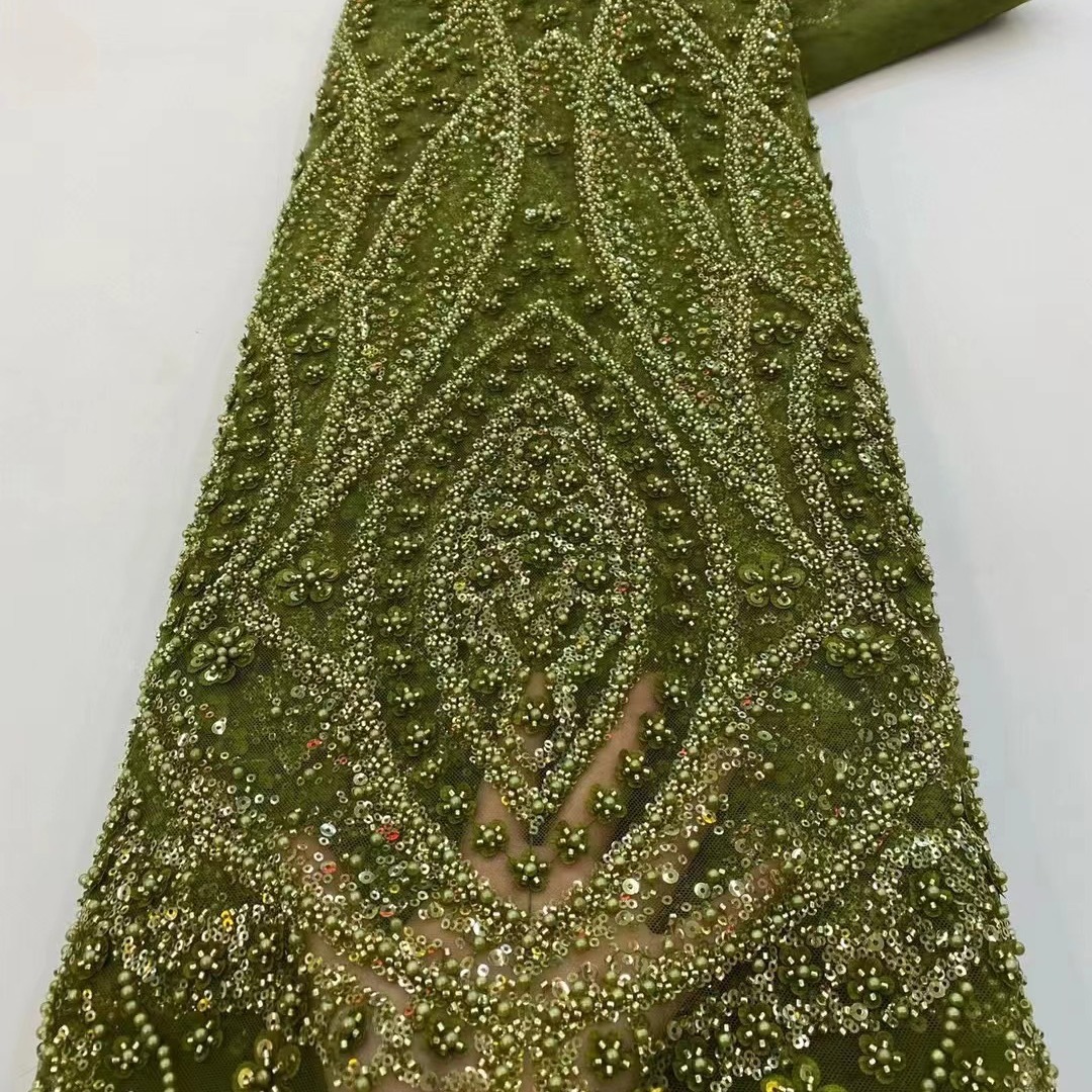 重工珠管ビーズ刺繍レース刺繍スパンコールレース立体花ワンピース生地5ヤードlace