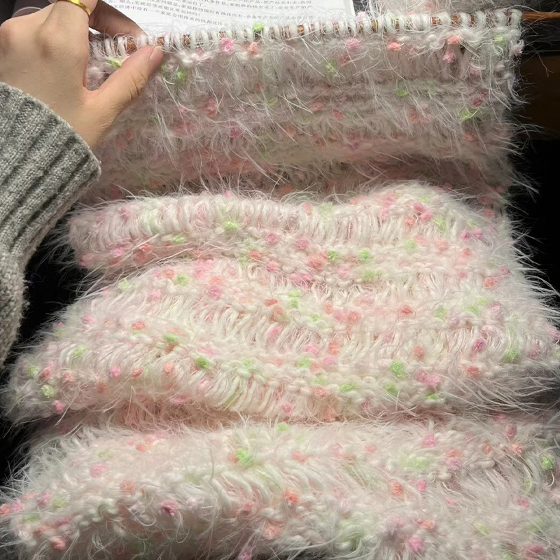 手作りdiy材料バッグ暖かいピンク白春桜手混糸マフラー編みdiy手作り棒針元宝
