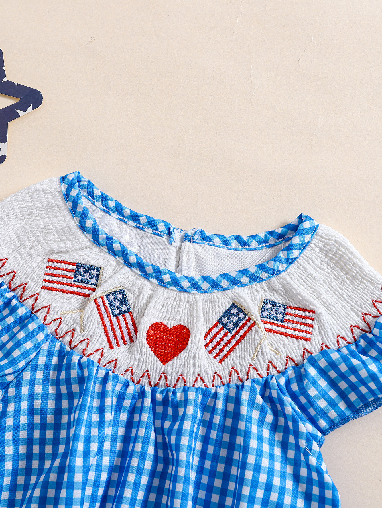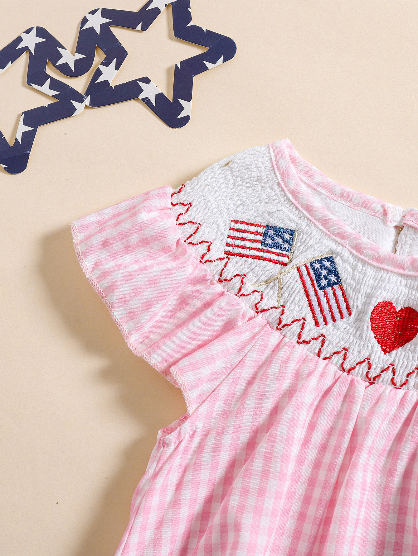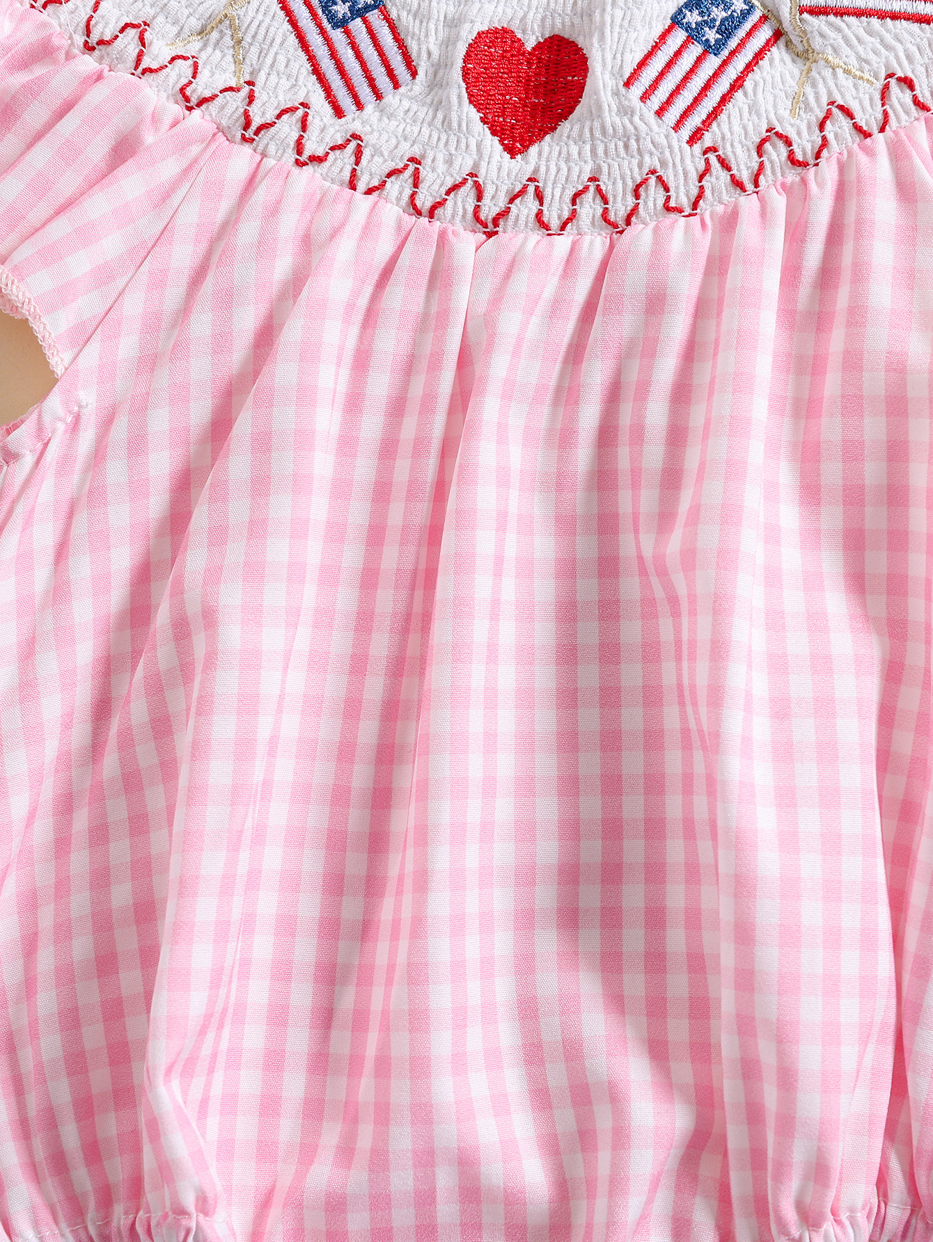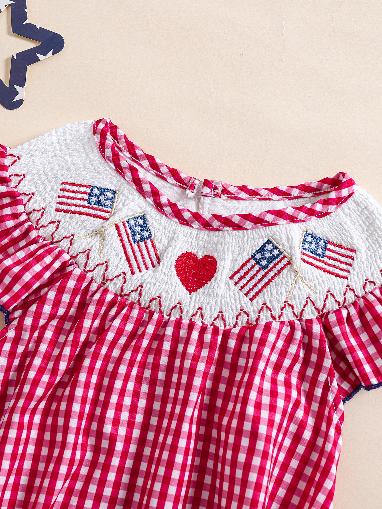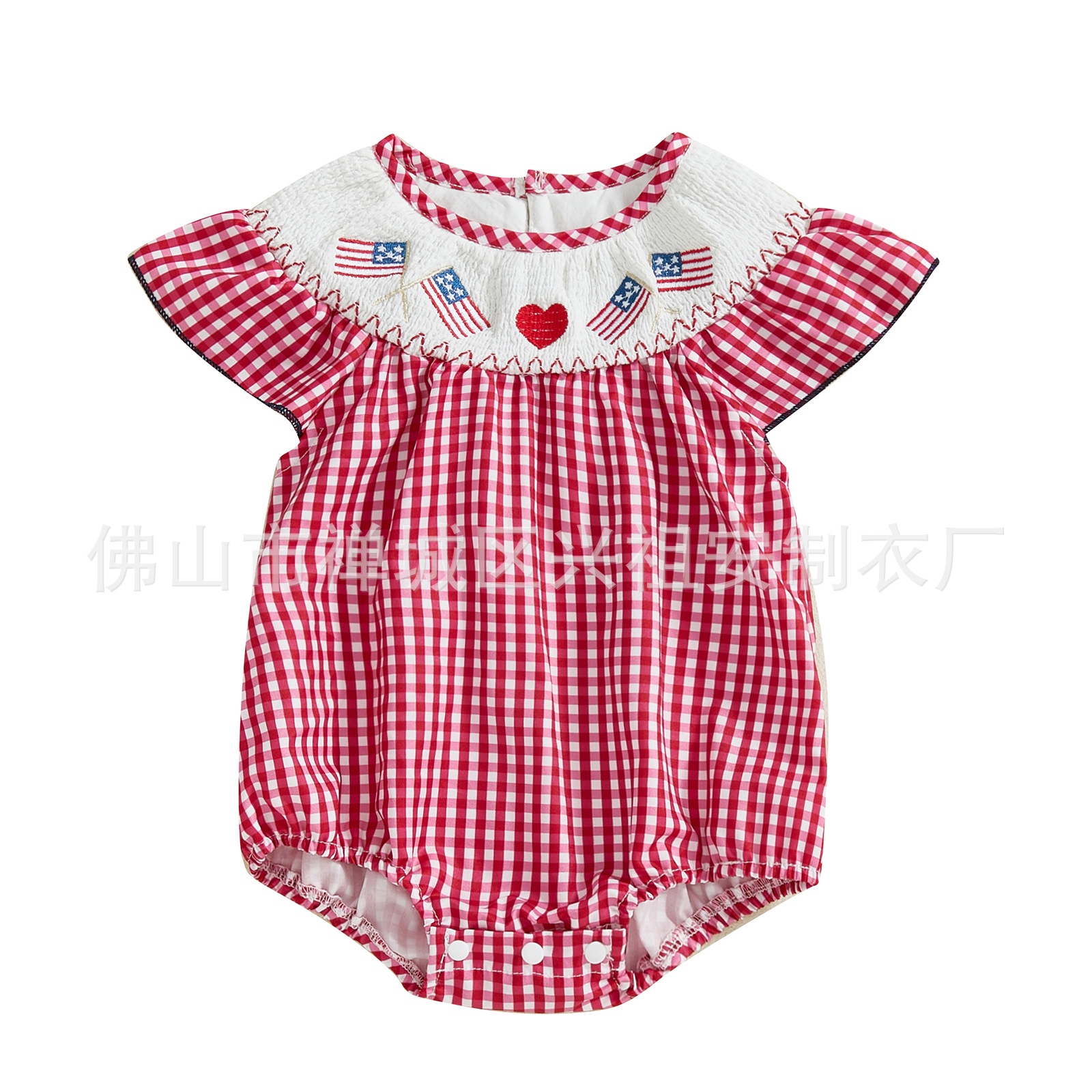 女の赤ちゃんのワンピースの夏の新型のバレンタインデーの格子の王女のスカートの刺繍の図案の泡の袖は服を登ります。