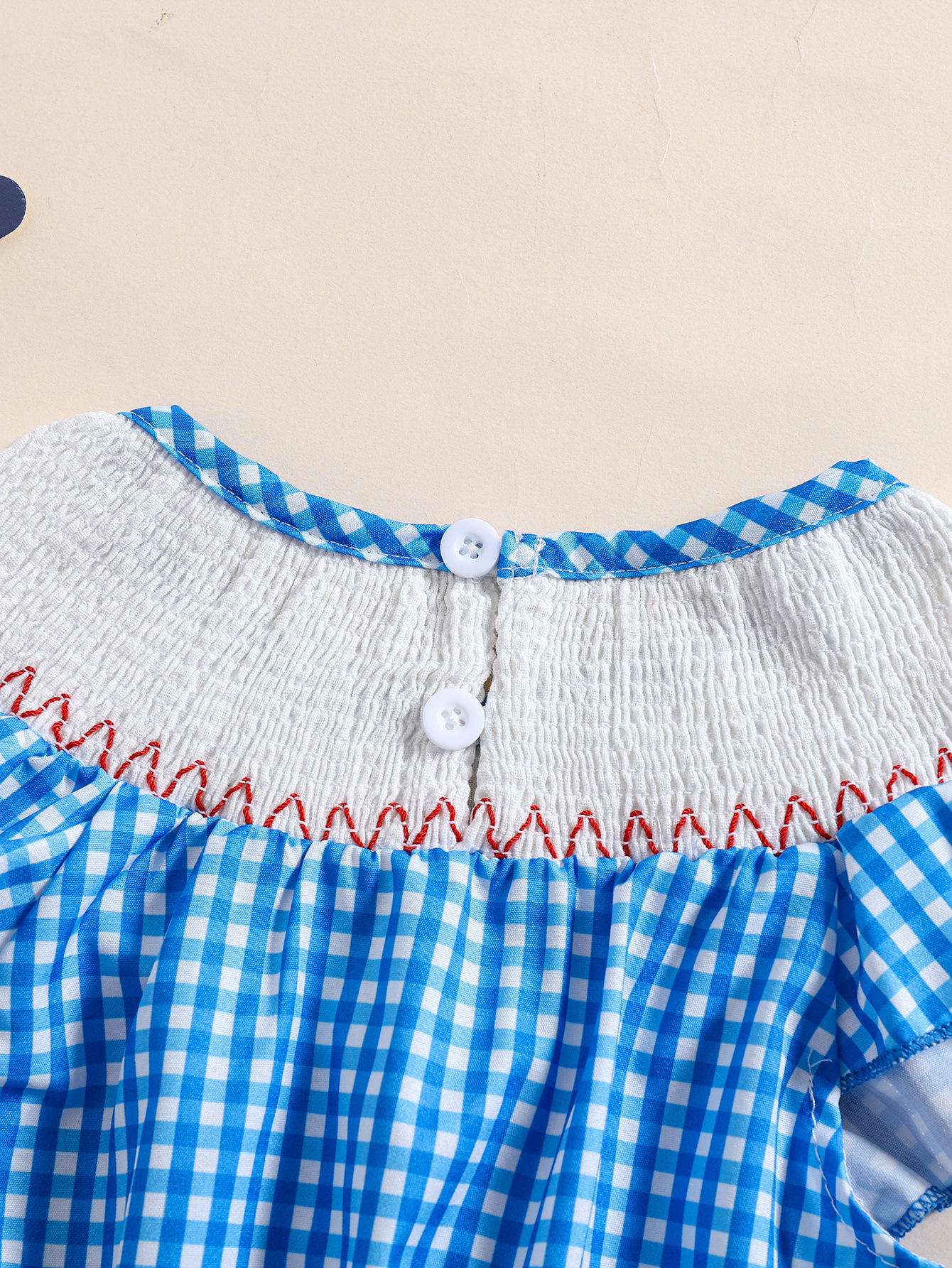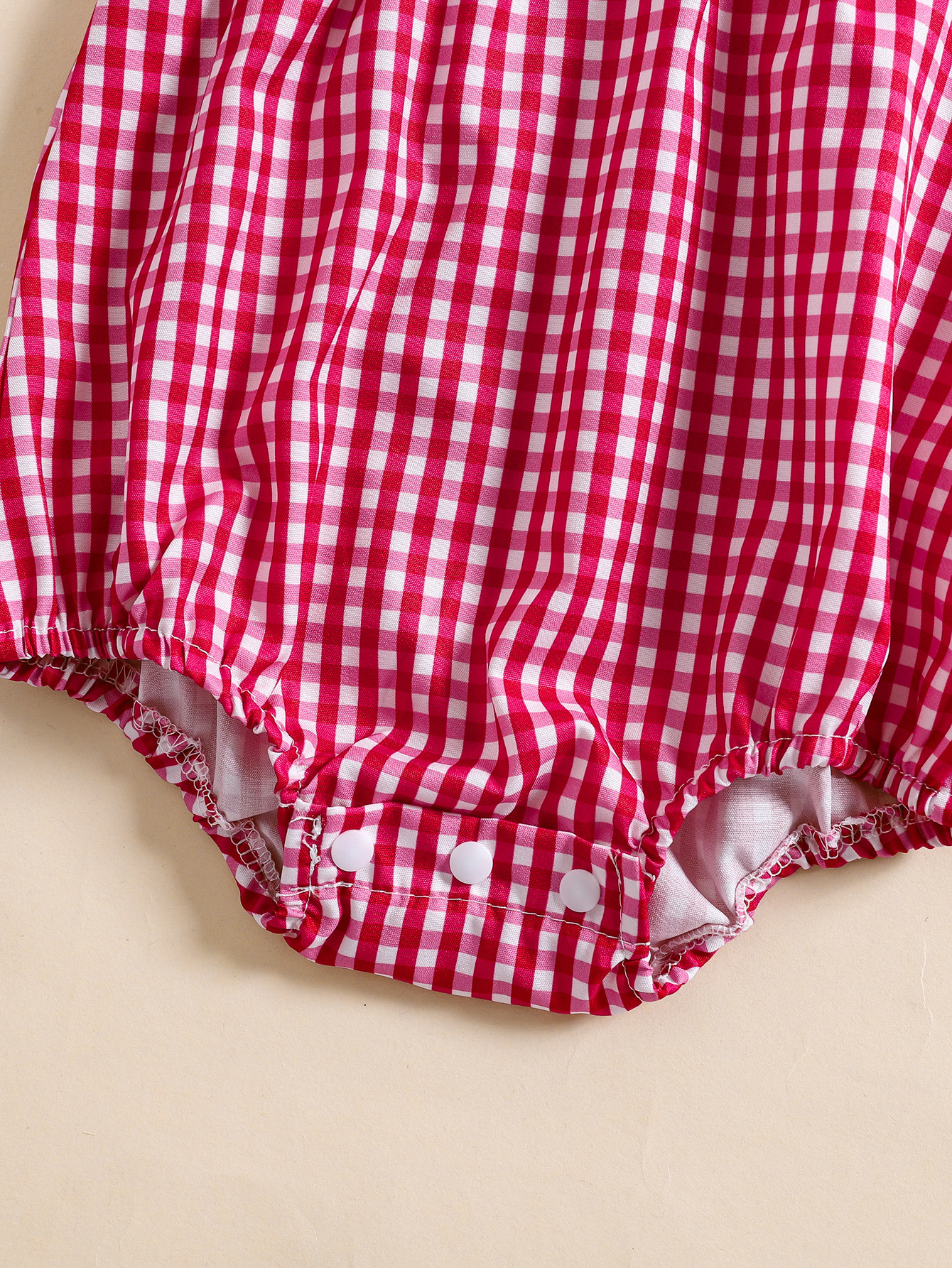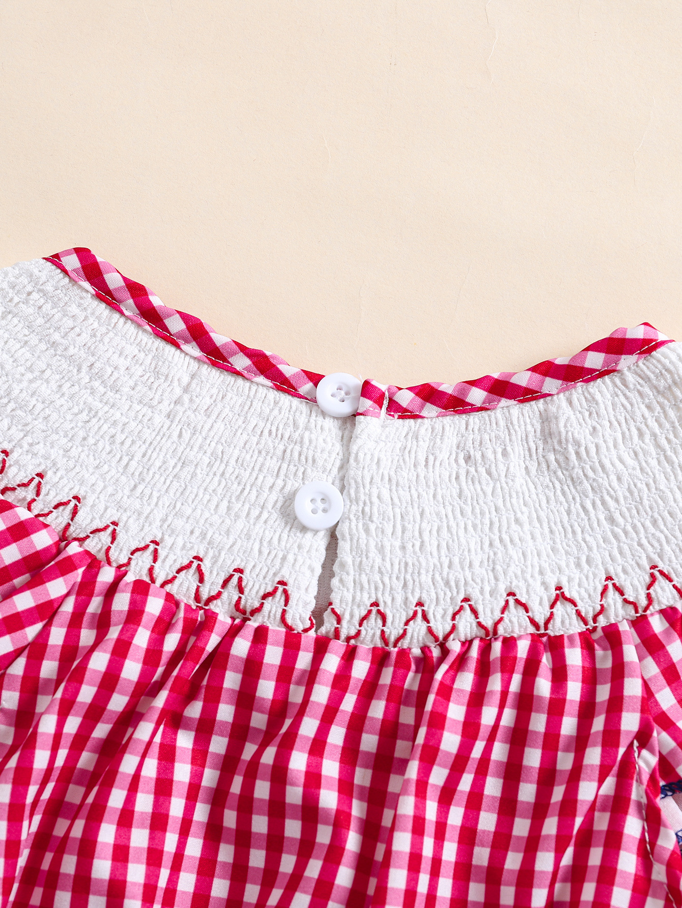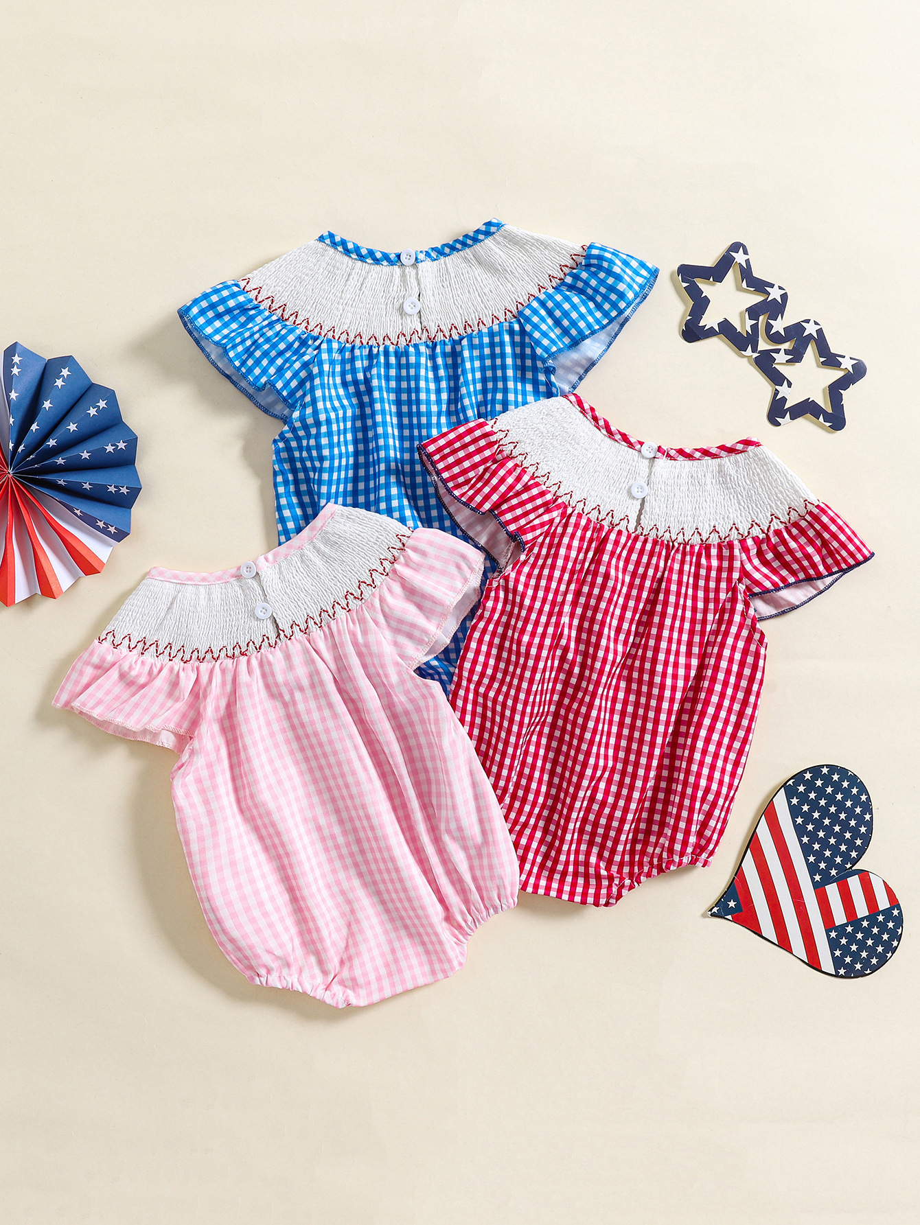 女の赤ちゃんのワンピースの夏の新型のバレンタインデーの格子の王女のスカートの刺繍の図案の泡の袖は服を登ります。