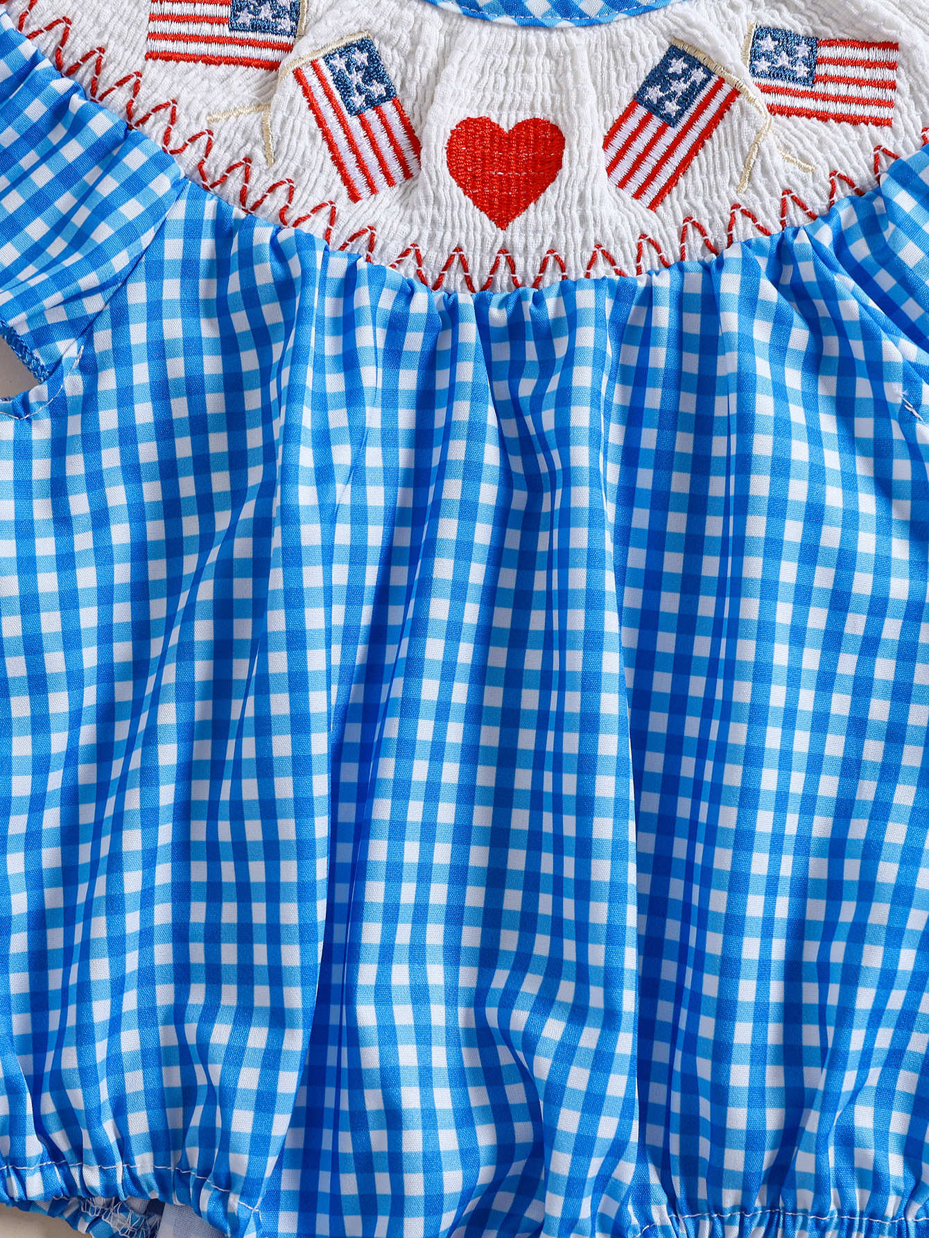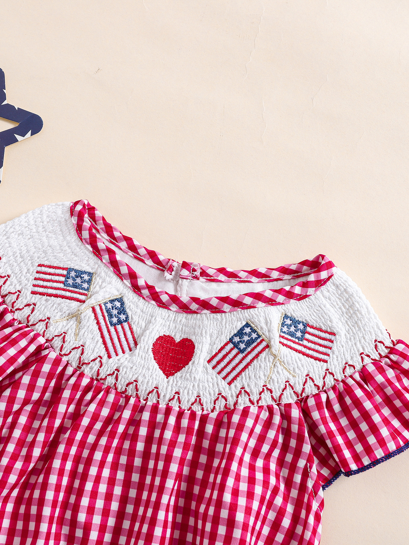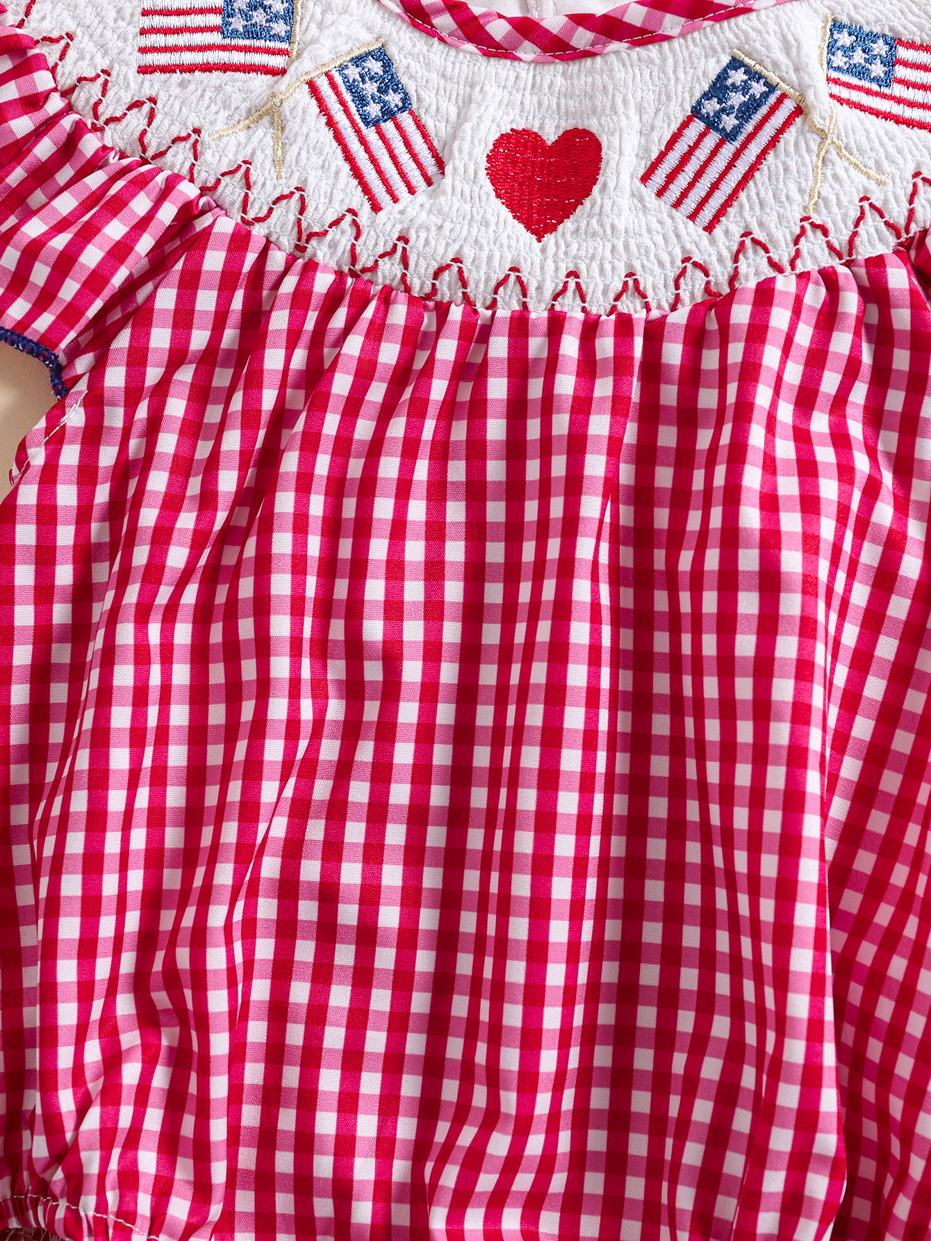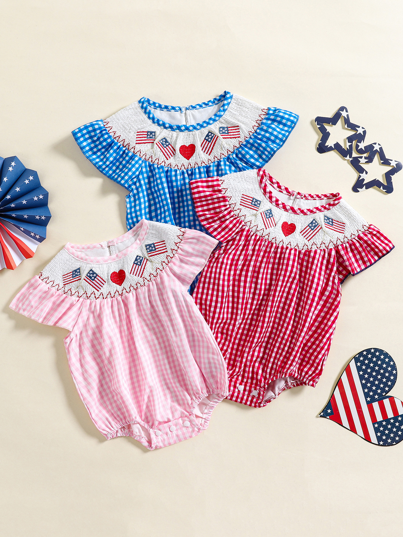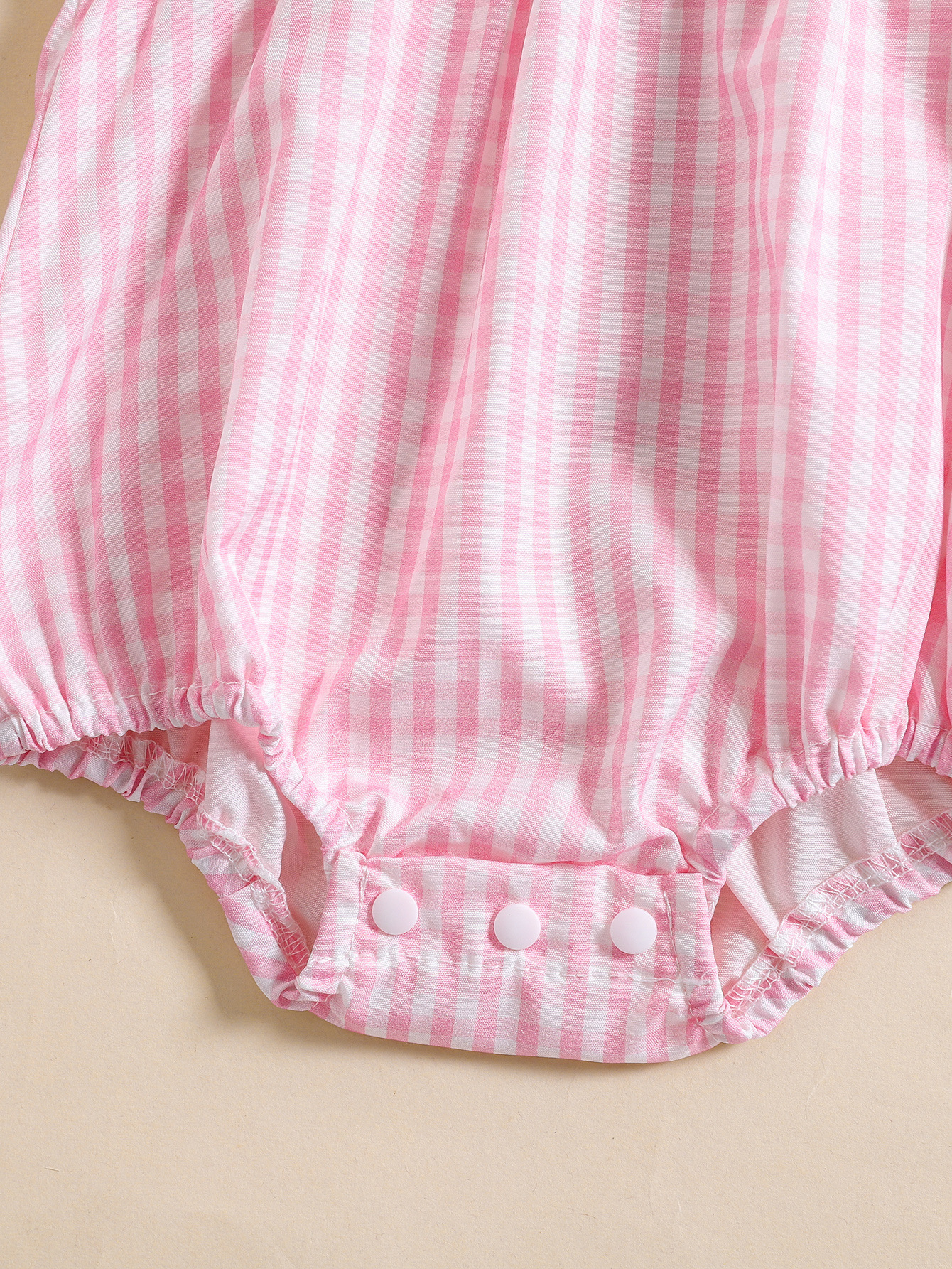 女の赤ちゃんのワンピースの夏の新型のバレンタインデーの格子の王女のスカートの刺繍の図案の泡の袖は服を登ります。