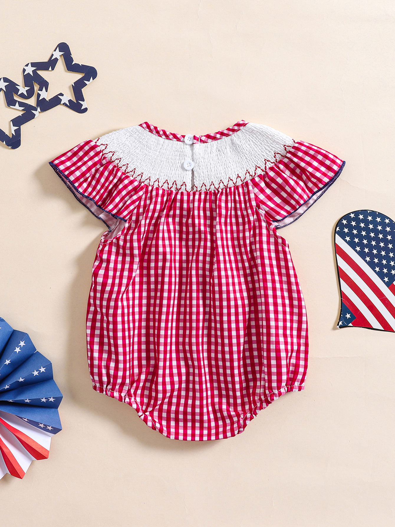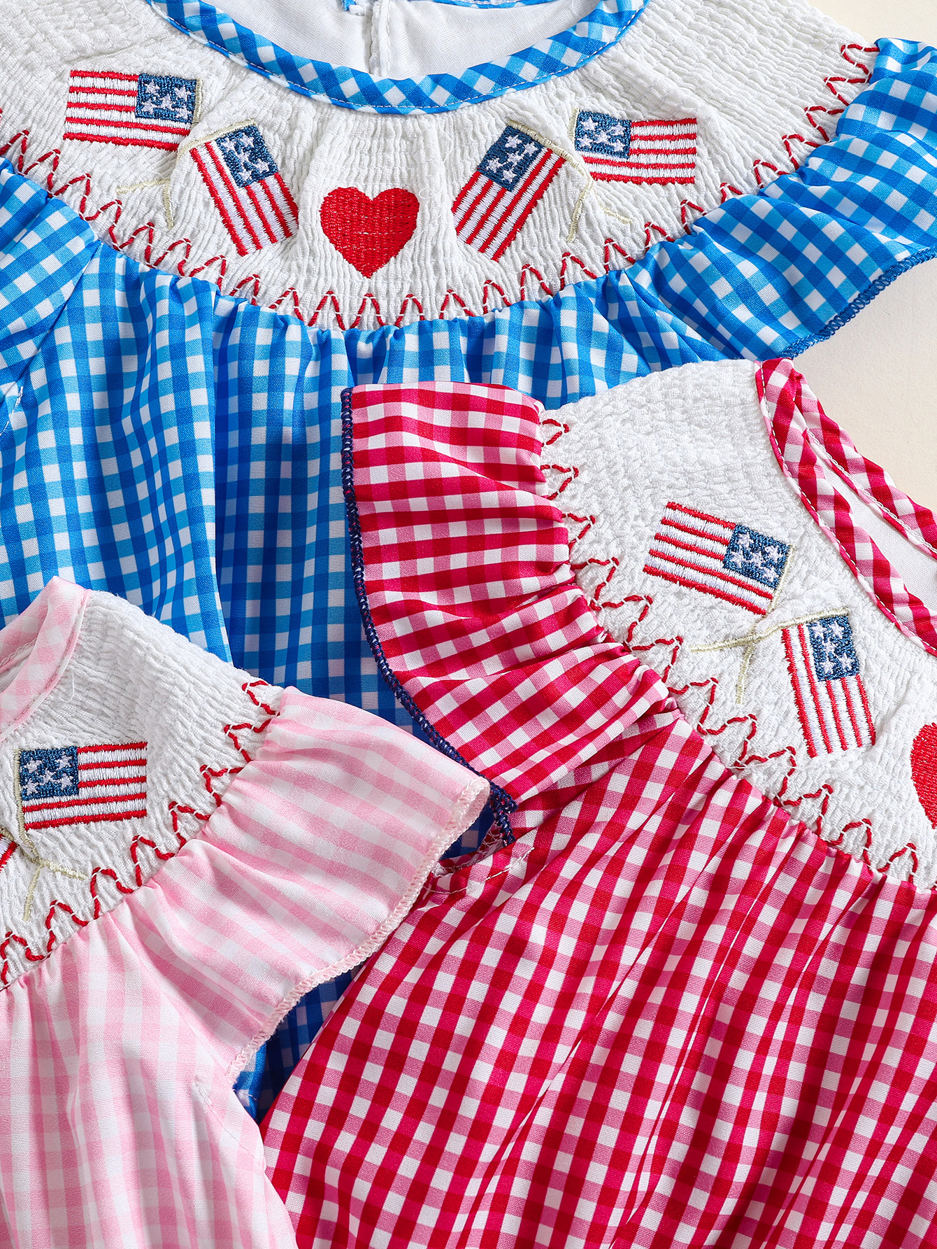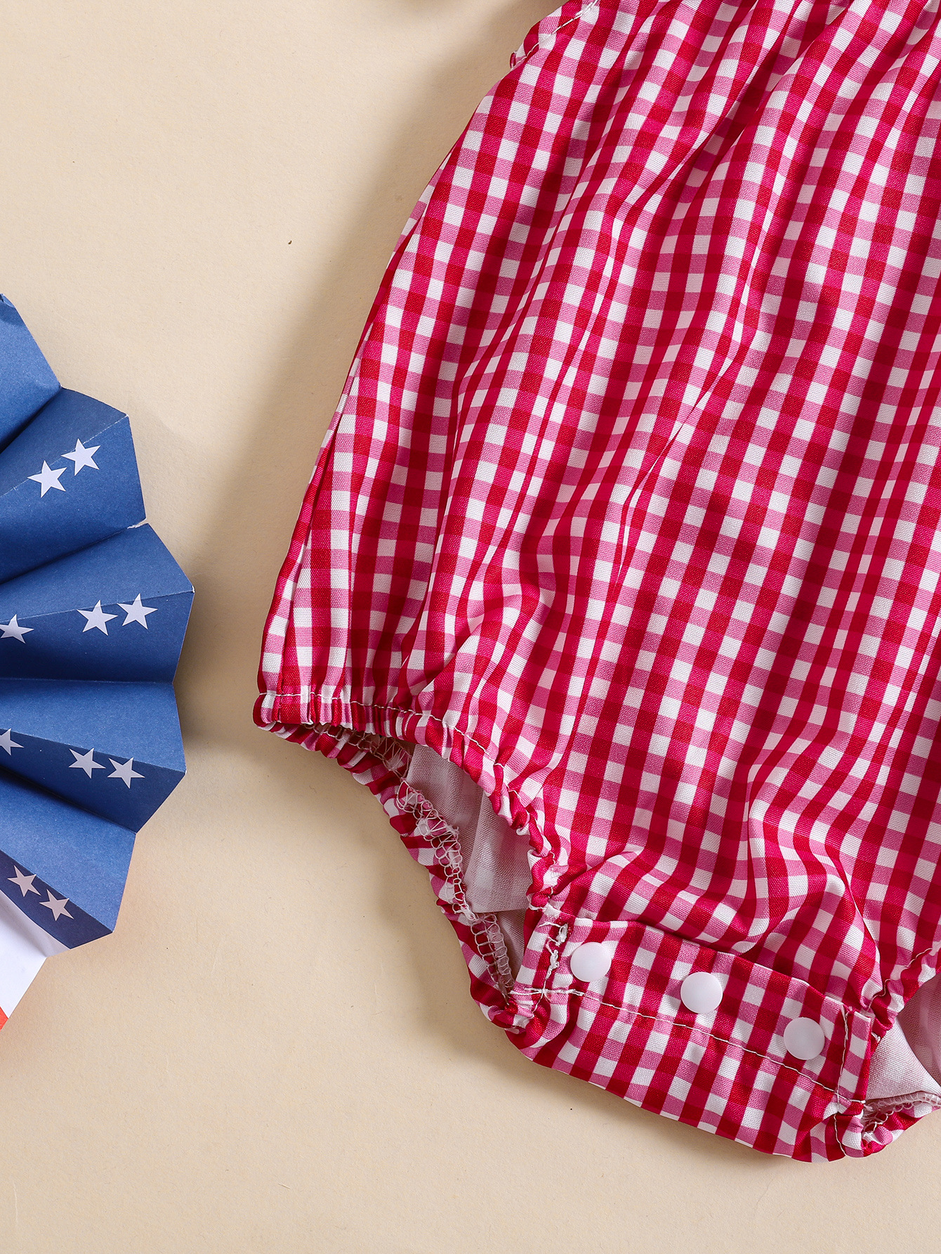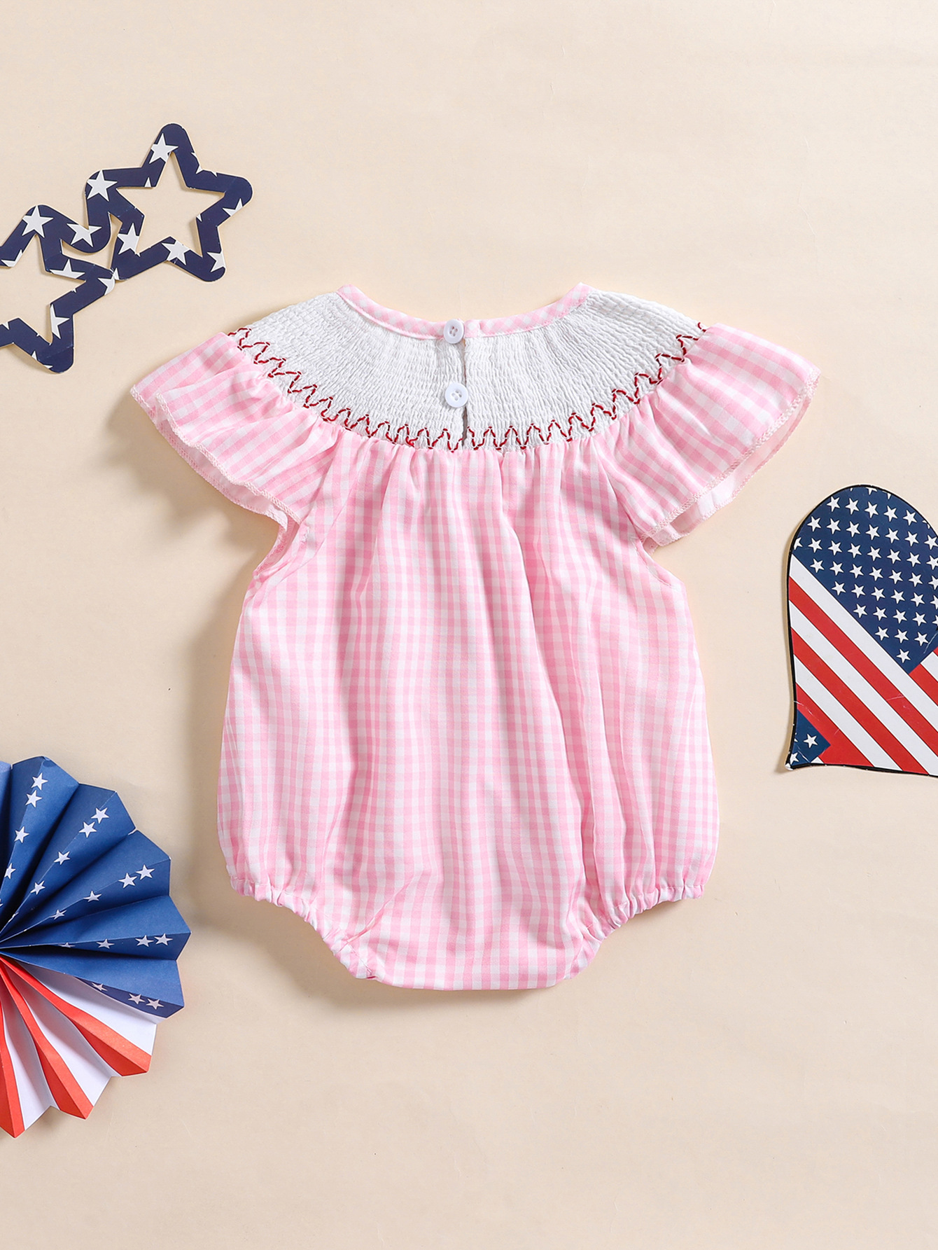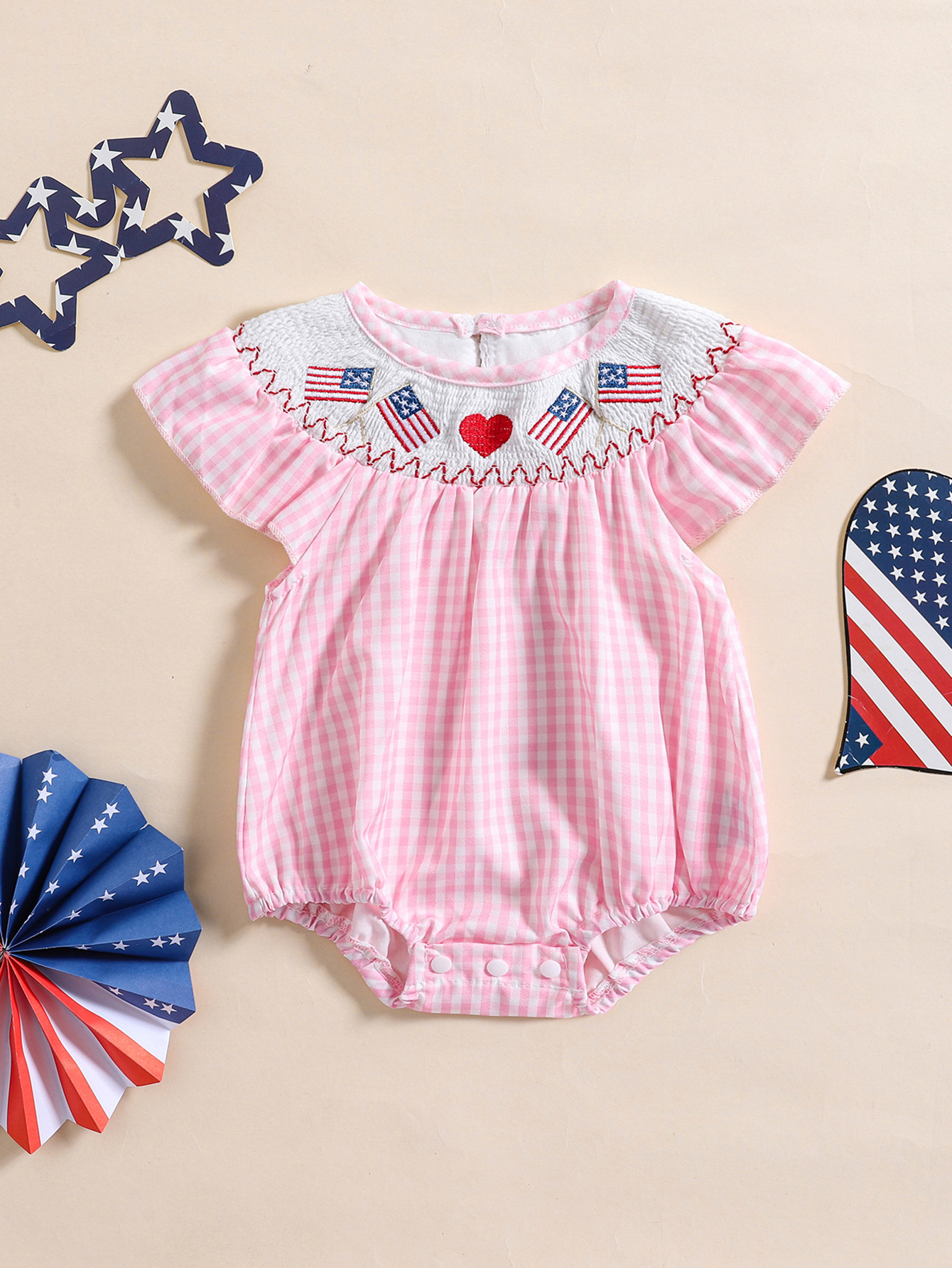 女の赤ちゃんのワンピースの夏の新型のバレンタインデーの格子の王女のスカートの刺繍の図案の泡の袖は服を登ります。