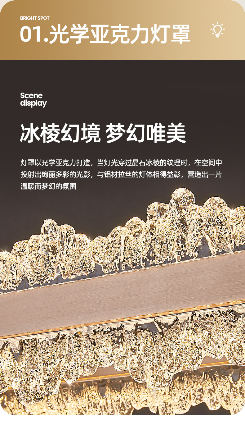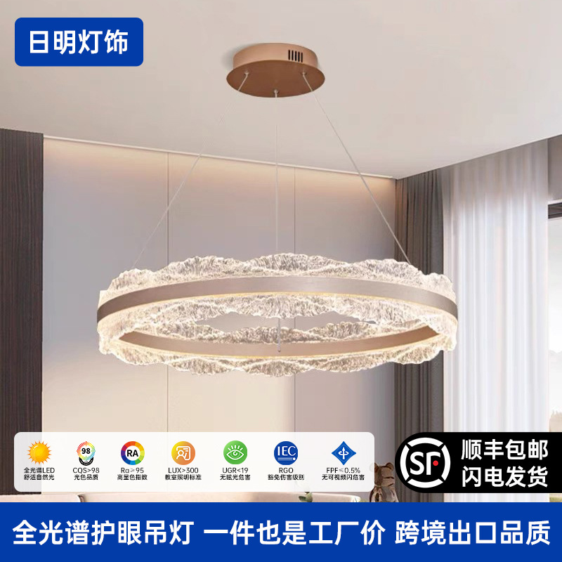 意式极简客厅餐厅吧台led吊灯圆形亚克力水晶高级感灯饰枝形吊灯